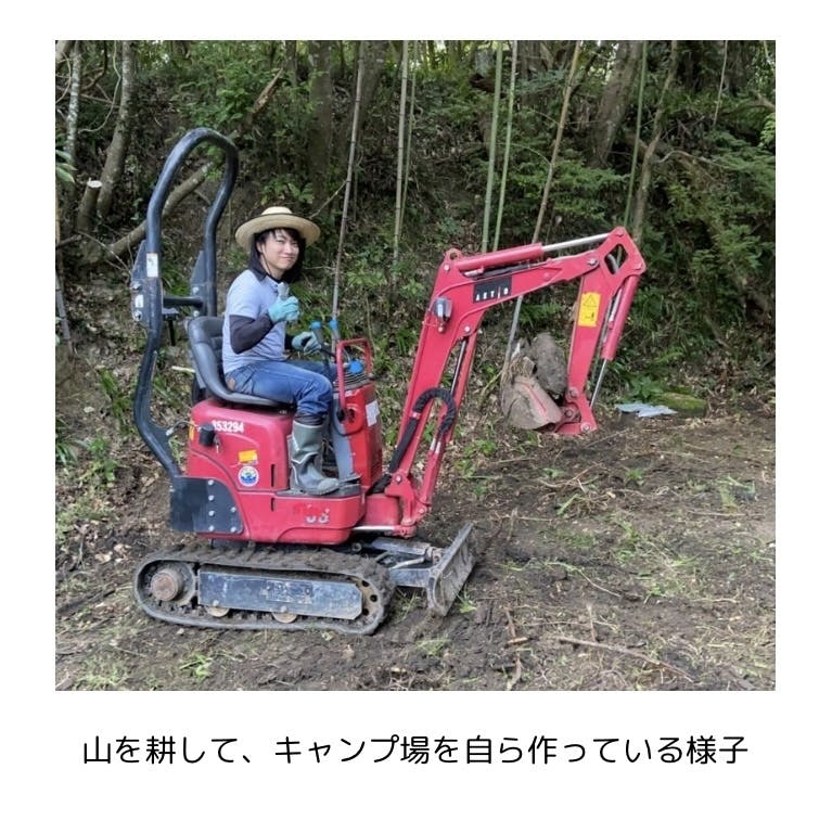 YouTubeのナイフ1本でサバイバルをするワイルドな外国人を観て憧れ、道具を揃えキャンプを始めるも、東京の住宅地とほぼ同じようなテントの隣り合わせ具合にうんざりし、自ら千葉の山を購入。