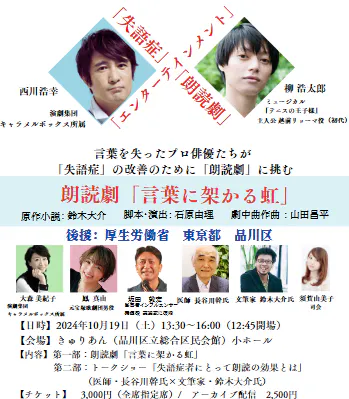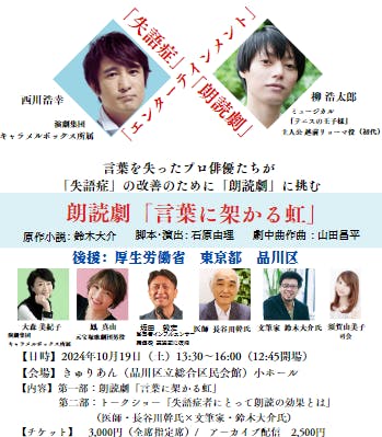 タイトル: 「失語症」×「朗読劇」×「エンタメ」 =「言葉に架かる虹」 10月19日(土)公演決定!!