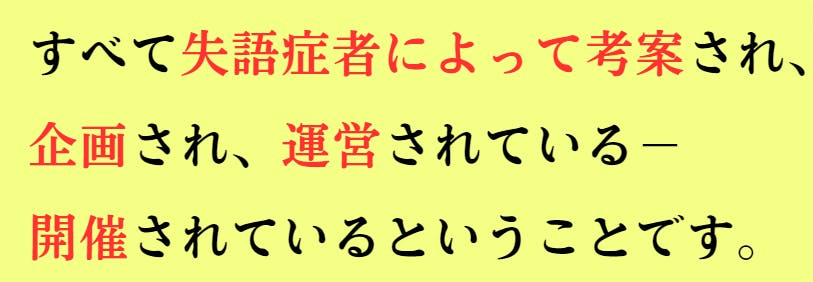 一般的な朗読教室は、指導者が別にいて失語症者に指導する形式が多く、時には「話せないのに頑張ってる」といった姿を強調する演出がされています。しかし、それでは本当に失語症を理解しているとは言えません。