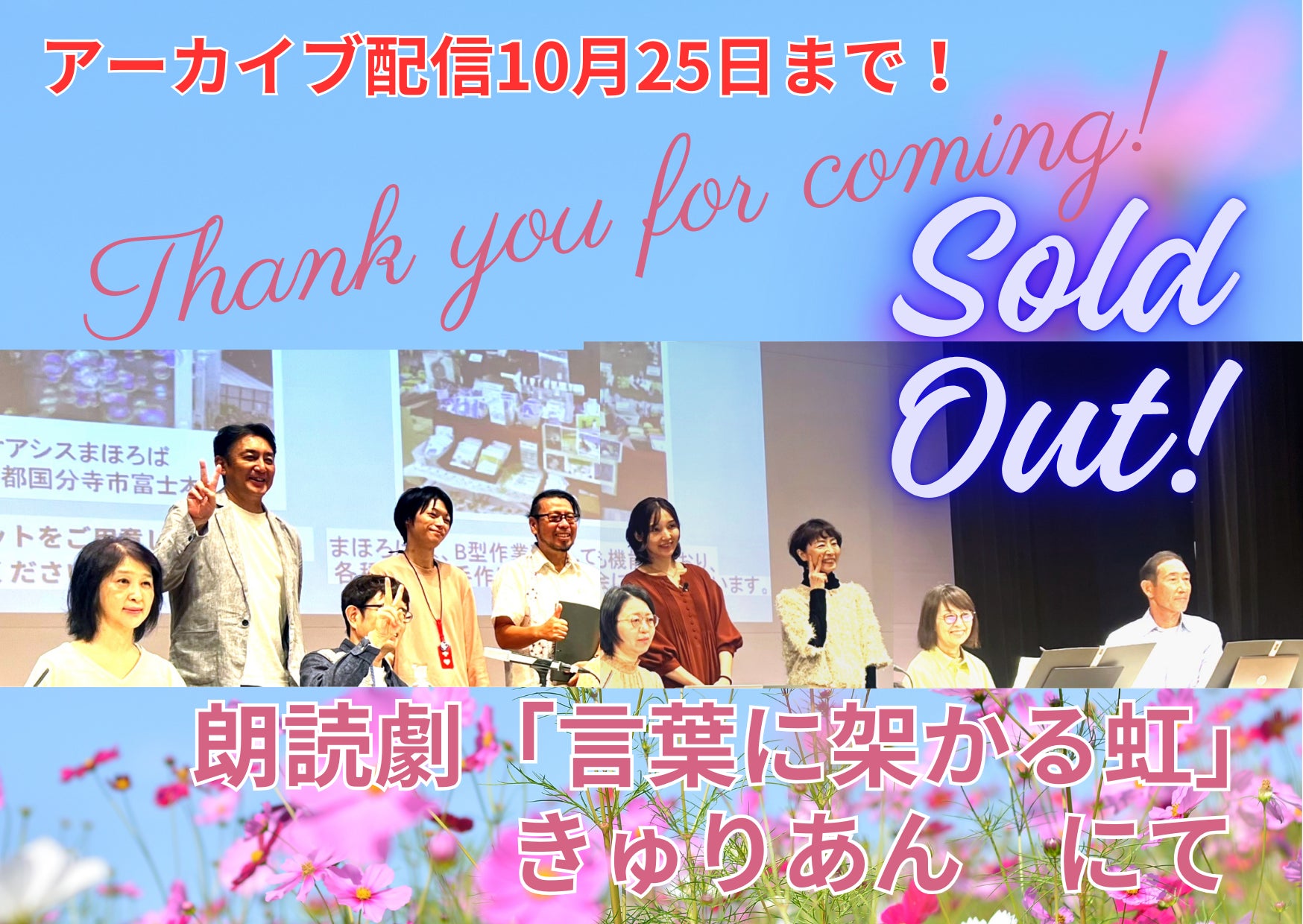 10月19日に開催された朗読劇『言葉に架かる虹』は、皆さまの熱いご支援のおかげでソールドアウトを達成し、大盛況のうちに幕を閉じました。