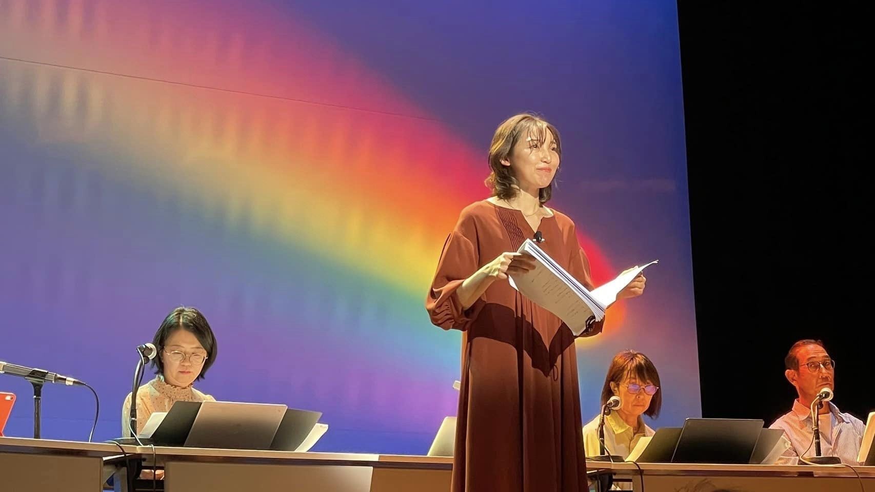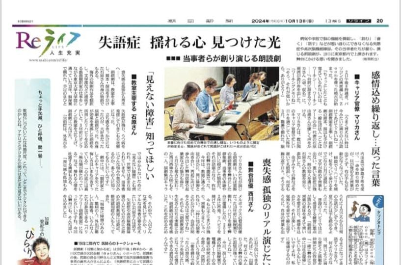 私たちの朗読劇「言葉に架かる虹」には、まさにこの失語症と闘う当事者たちが自らの声で、輝く姿を描きました。