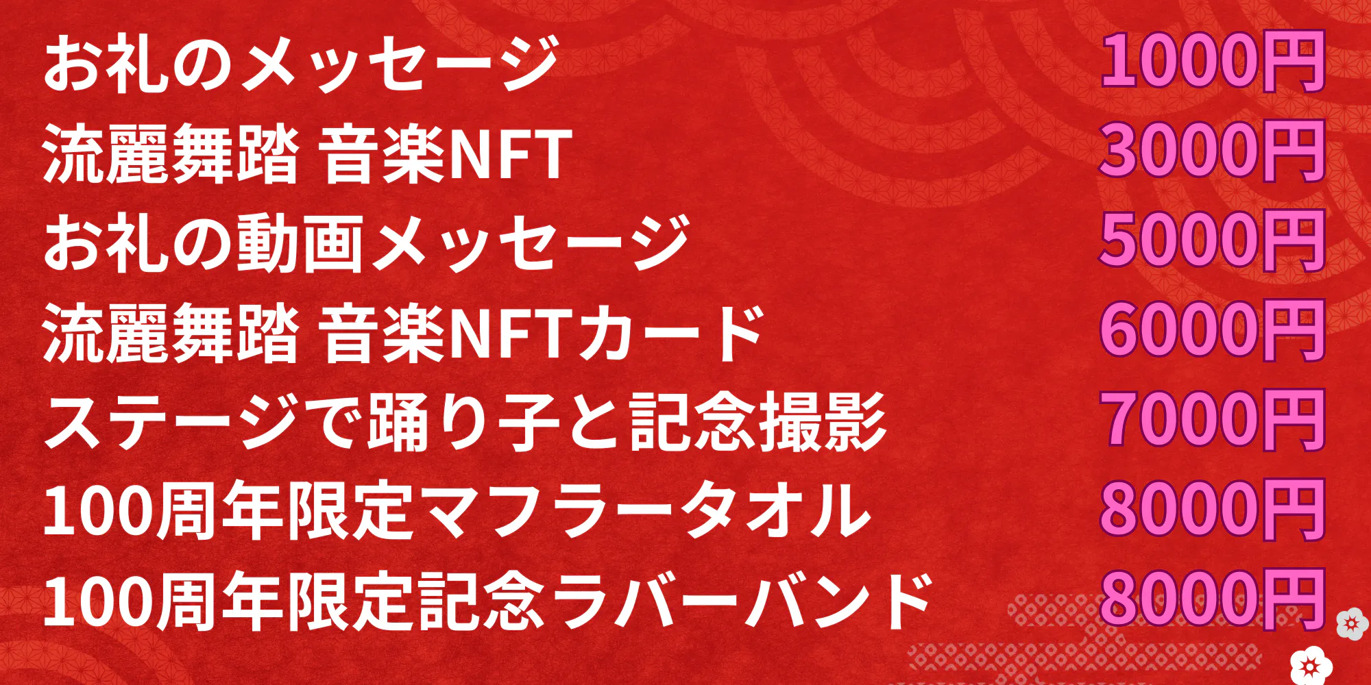 このお祭りだけの特別デザインのNFTを提供します。デジタルコレクターアイテムとして、このイベントの記憶を永遠に保持することができます。