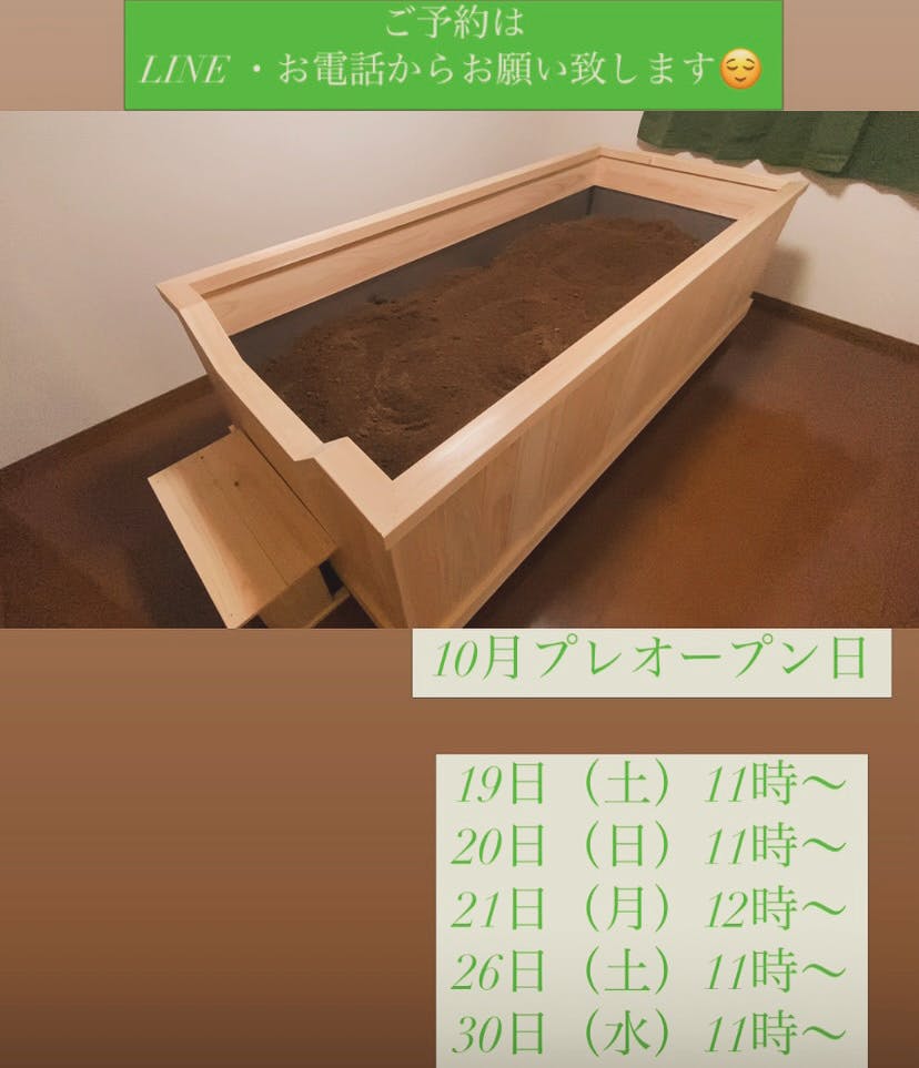 2024/10/09 21:06いつもご覧頂きありがとうございます。本日、保健所の内覧があり無事に公衆浴場の許可取りが完了しました。正式なオープン日を11月1日として、新たな出発点とさせて頂きます。シンプルに良いものを創り出し、身体を温めること。皆様に酵素温浴で何か一つでも人生における良い変化をもたらすものであって欲しい。看護師の知識を酵素温浴を通じて皆様に還元できたら幸いです。たくさんのご支援誠にありがとうございました。今後とも、宜しくお願い致します。 もっと見る