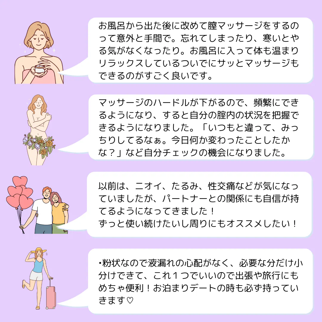 「フェムゾーンがふっくら潤い、触り心地が良くなって、フェムケアをすることが楽しくなった!」