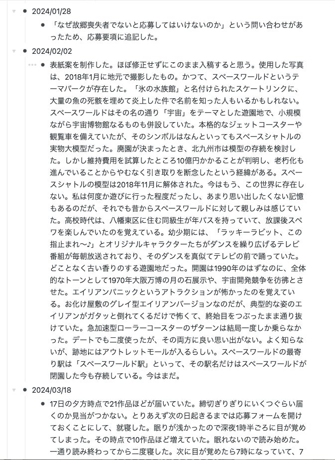 故郷喪失アンソロジーの制作を思いついてから制作日誌をつけています。