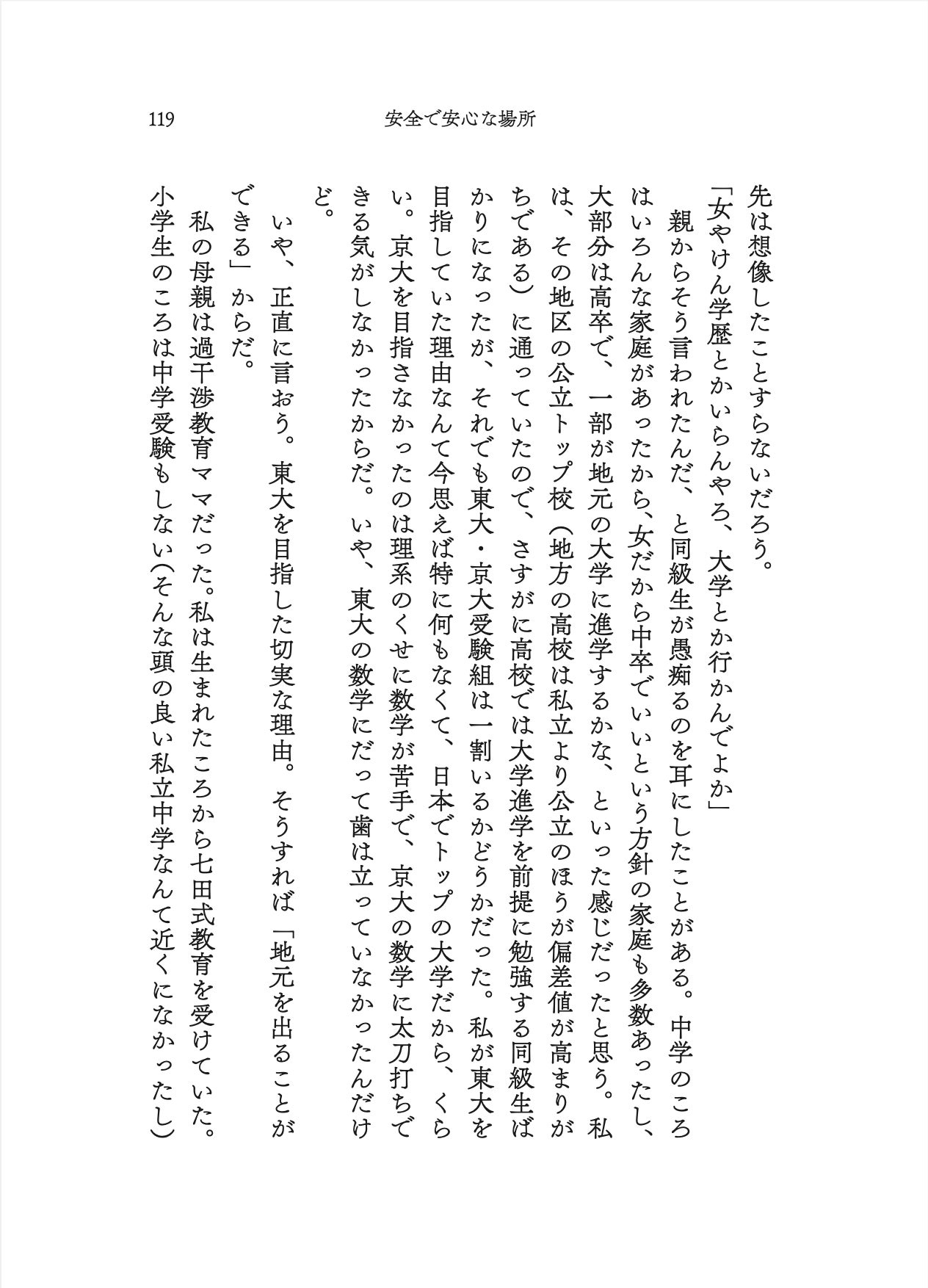 高校時代の活動範囲は学校か家か塾。休日に家を出ることもなかった。誰と、どこに行って、何をするのか、親から根掘り葉掘り聞かれるのが嫌で、外出が億劫だった。とにかく非常に狭い世界で生きていた。