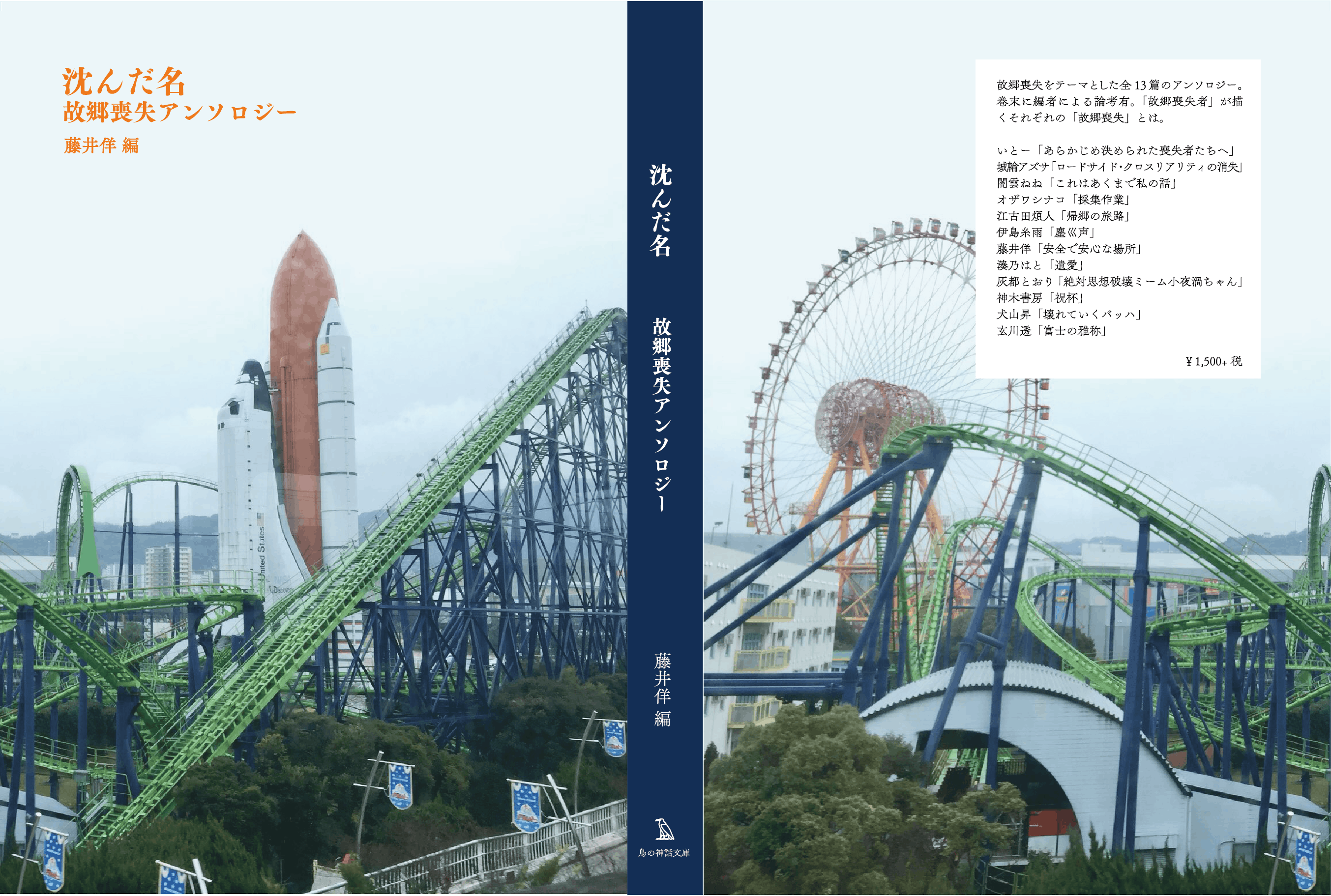 故郷喪失アンソロジーの表紙はこちらになります。ジェットコースターが張り巡らされ、その中にスペースシャトル?観覧車?がありますね。一体どこの何なんだ……。気になっていた方もいらっしゃるかもしれません、お待たせしました!