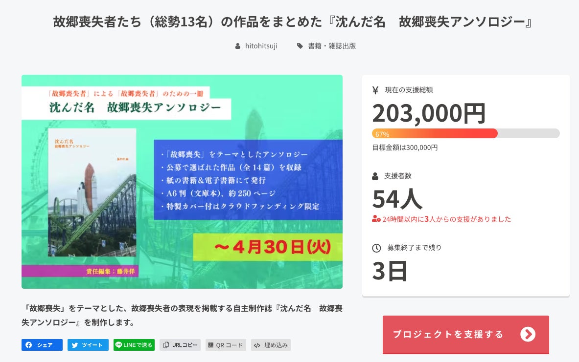 クラウドファンディング終了まであと3日となりました!