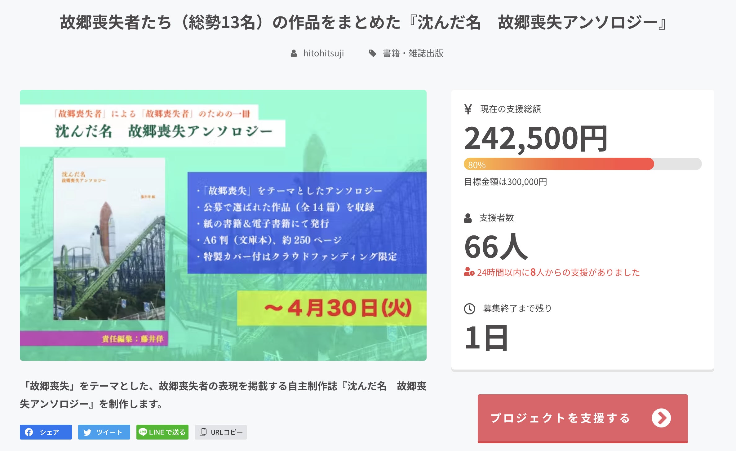 クラウドファンディングは残り1日! 4月30日までで終わりです。