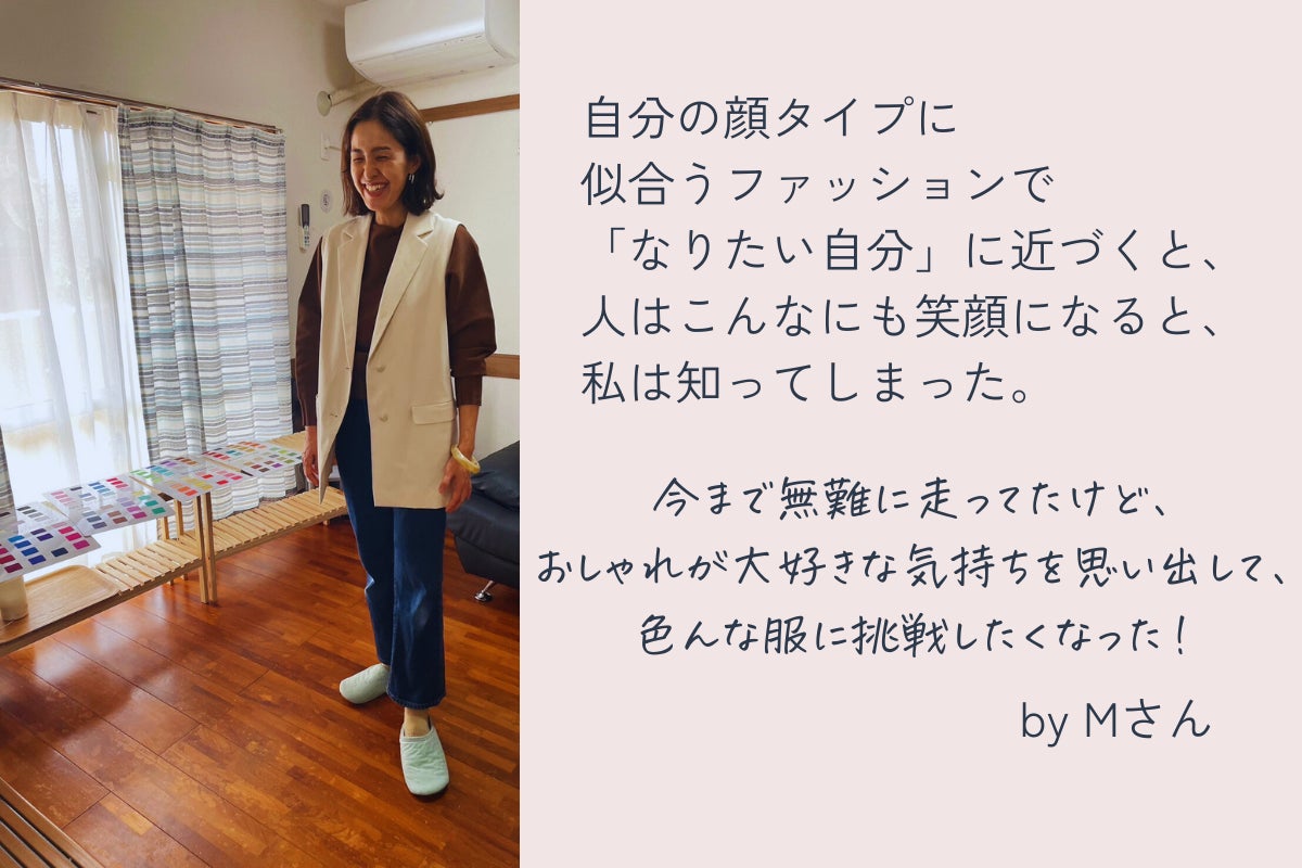 「顔タイプ診断」を受けることで、服選びを楽しんでほしいし、輝く笑顔を見せてほしい。心からそう思います。