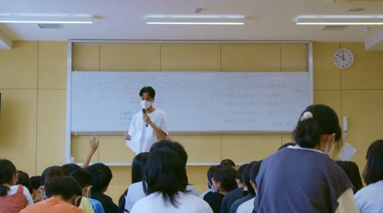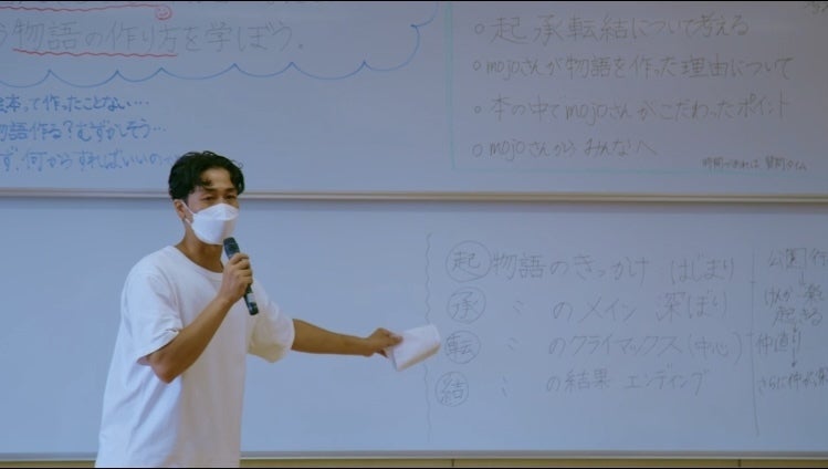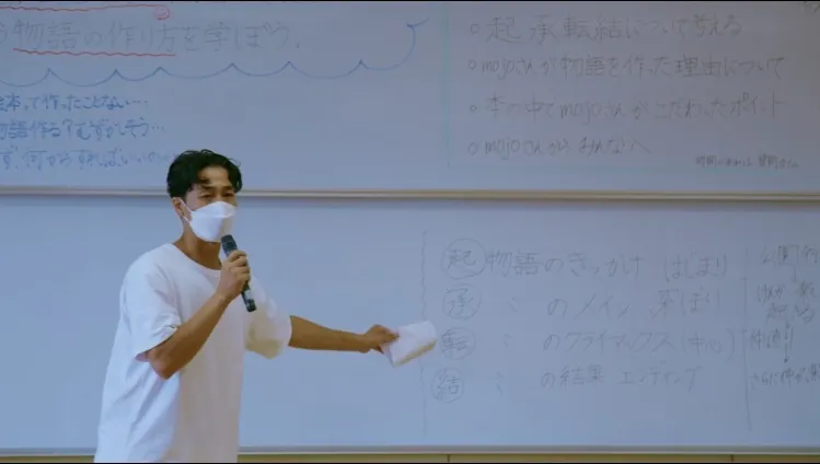 【小学校で絵本の作り方を伝える講師をしている様子】
