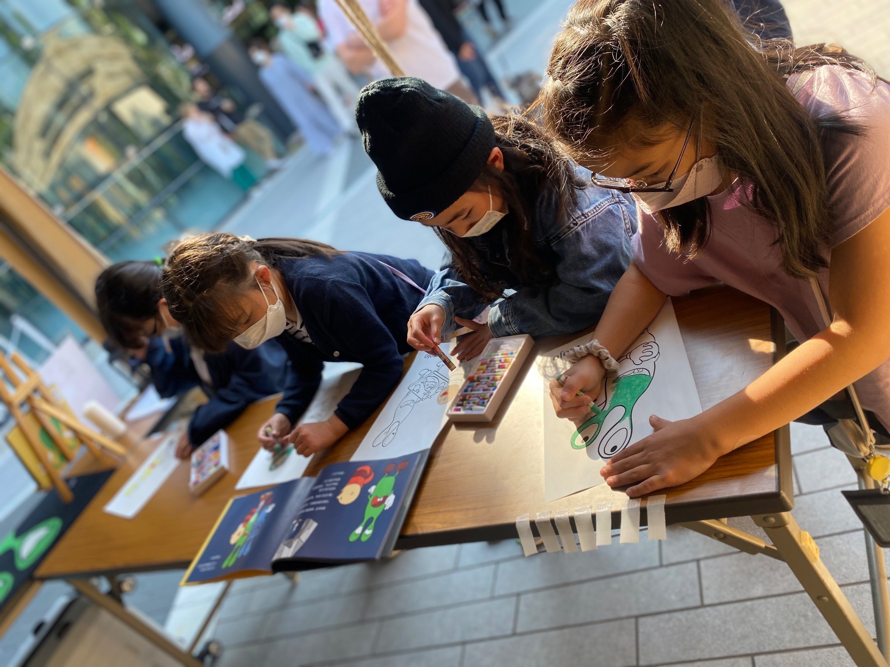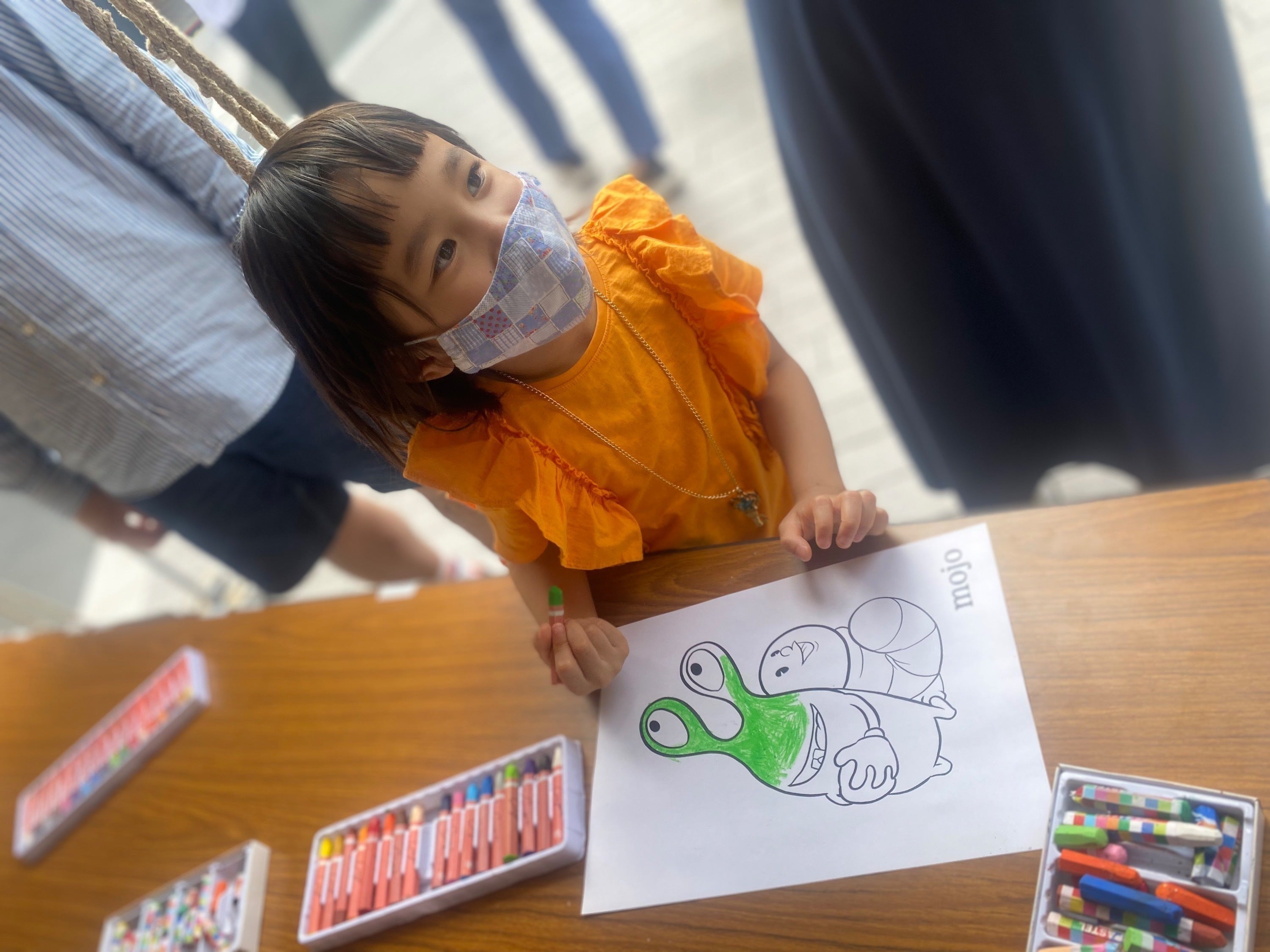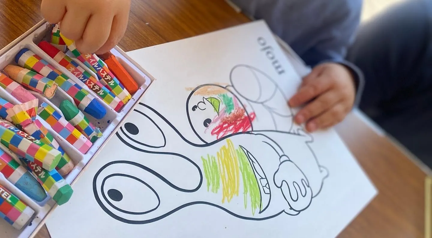 【絵本 ケチョスのひかり お子さんがぬりえをしている様子】