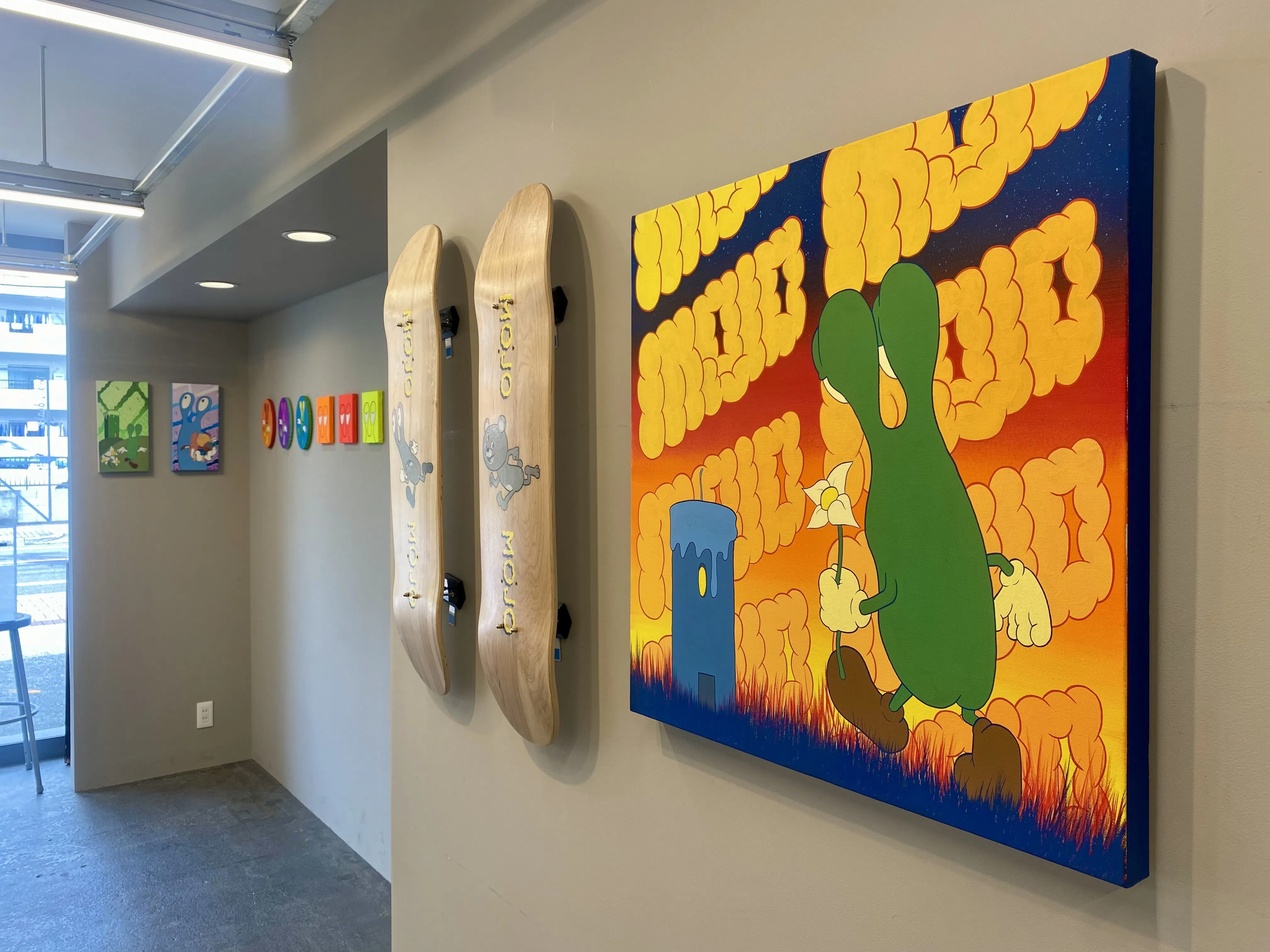 mojoは、アイコニックなオリジナルキャラクター達による世界観が特徴的なアーティストです。オリジナル作品の発表を続け、国内で個展やグループ展、アートフェア等に出展し、人気を集めています。