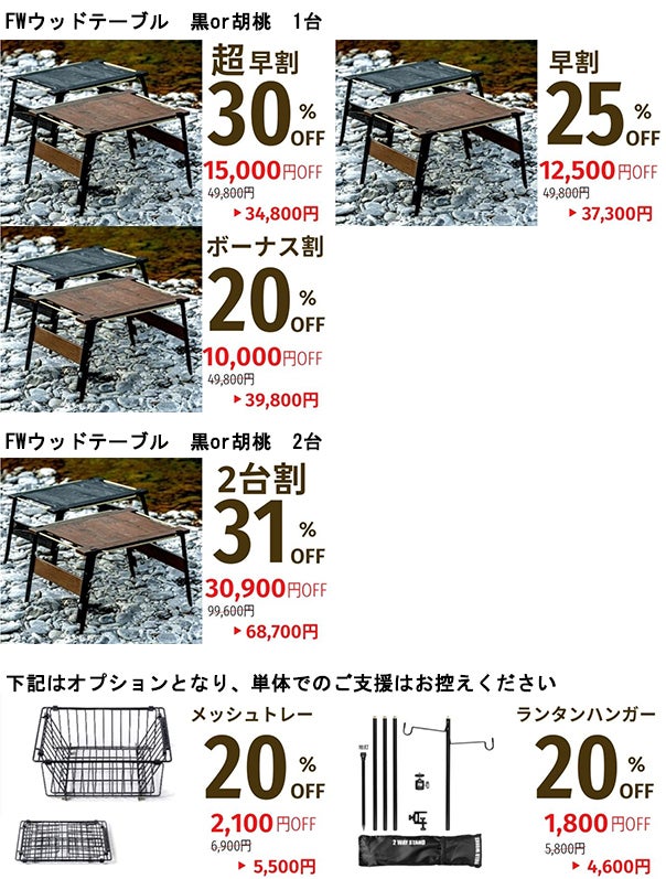 皆様からご支援いただく資金は、「FIELD WORKS WOOD TABLE」の開発費・宣伝費に充てさせていただきます。