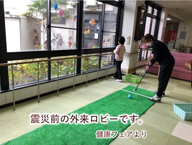 発災後から時間に追われるように今を迎えています。毎日発生しする未曾有の”困難”。それを乗越えるために試行錯誤の連続。院内では生活可能な1階クリニック部分は全て(検査室・オペ室・外来ロビー他)居室に整えました。(画像は震災前の外来ロビーと現在の同場所です。)