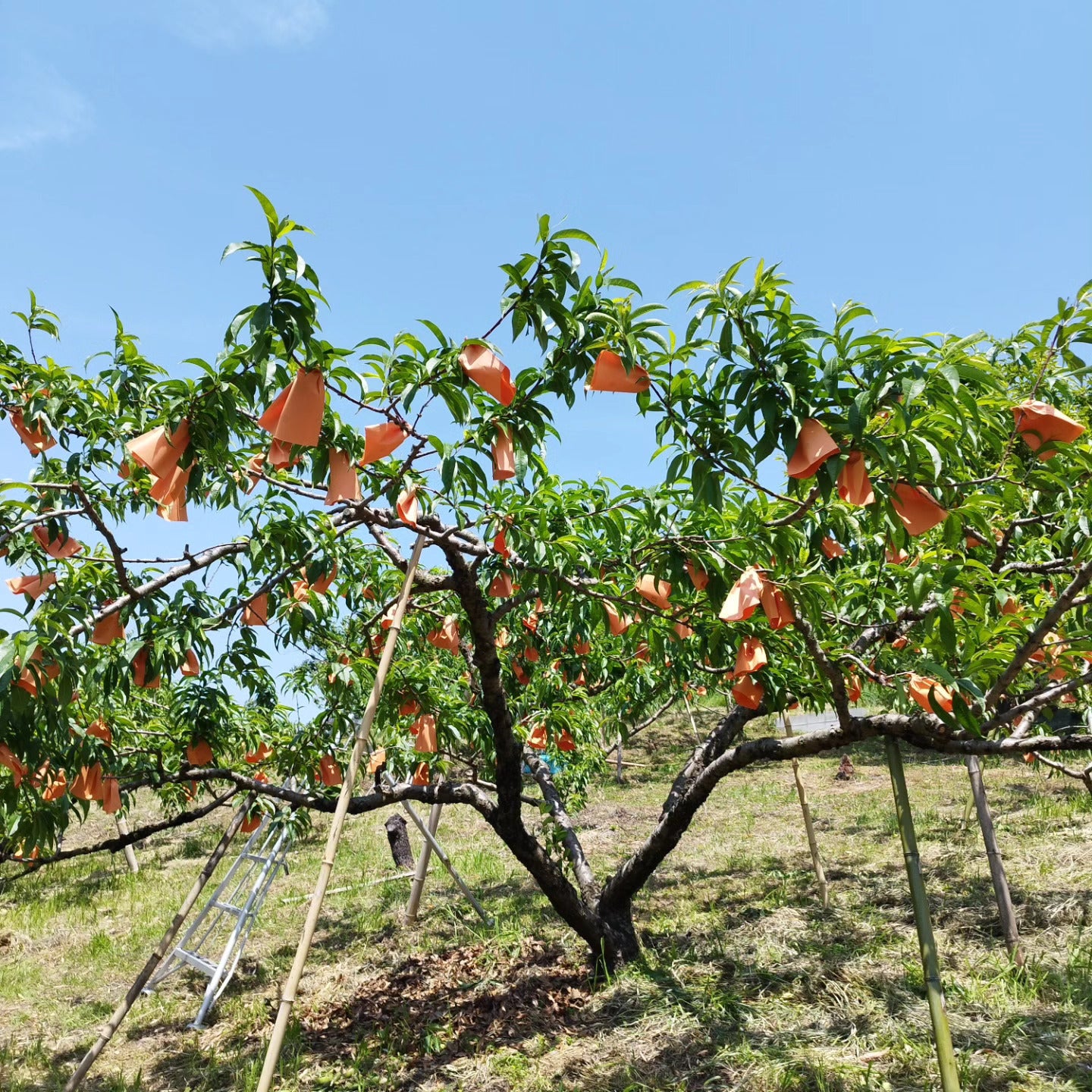 岡山では、袋を付けたまま収穫する有袋栽培が一般的です。こうすることで桃肌が白い上品な白桃が出来上がります!