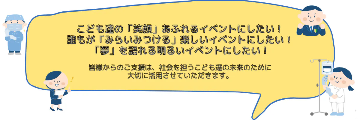しかしながら、私たちには仕事の内容を伝えるシナリオや、1日千人以上のイベントを実施するノウハウがございません。そこで、リアルな仕事を伝え、安全にイベントを開催するためにも、本格的な仕事体験を提供する企業に監修をお願いしたいと思い、その費用捻出のために今回プロジェクトを立ち上げました。