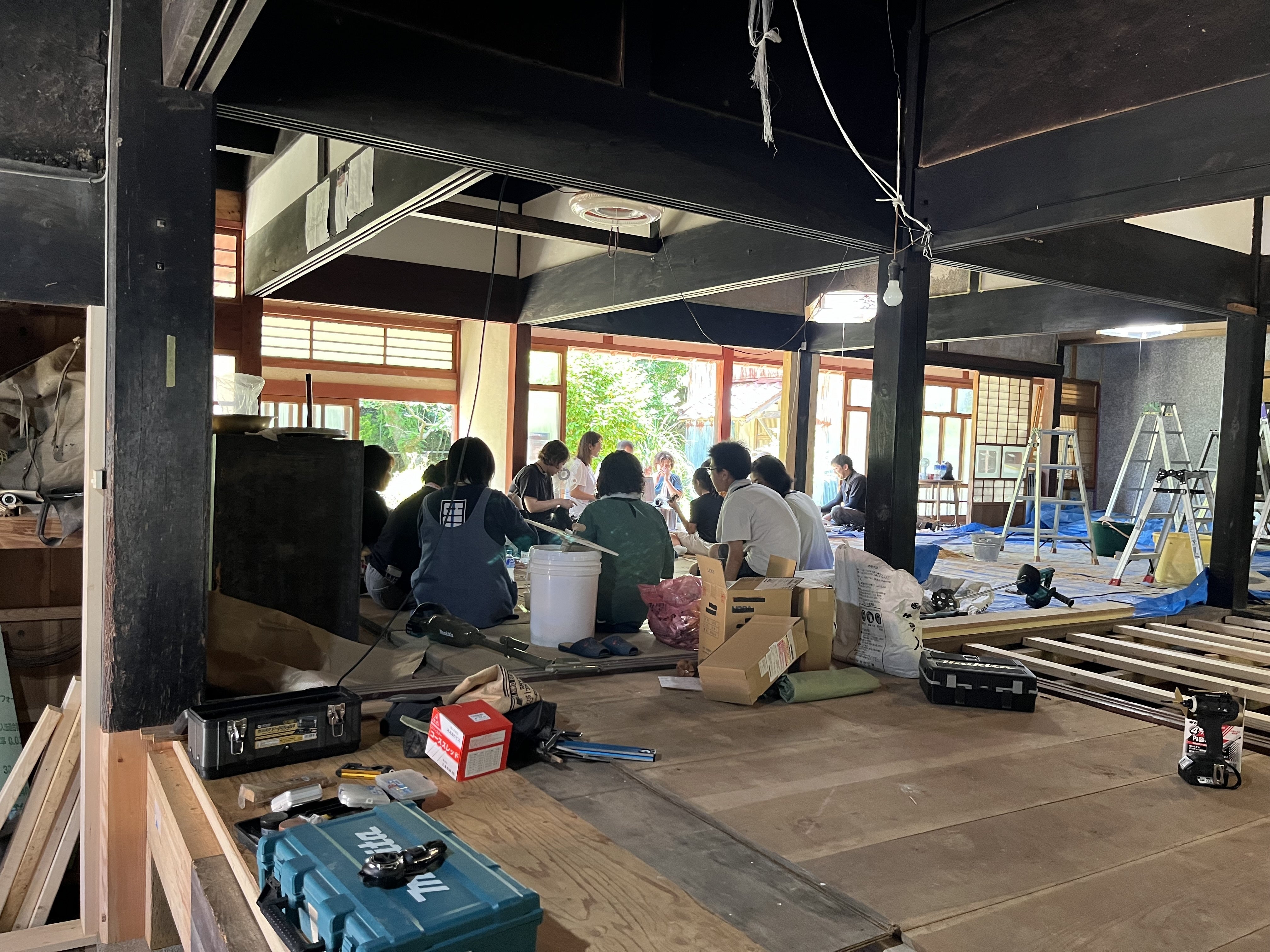 屋根、基礎などの工事を依頼する工務店さんと一緒に店舗改装をみんなで行う予定です。主な作業はフローリング張り、漆喰塗りです。皆さんと一緒にお店を作っていけたらとっても楽しいと思います!