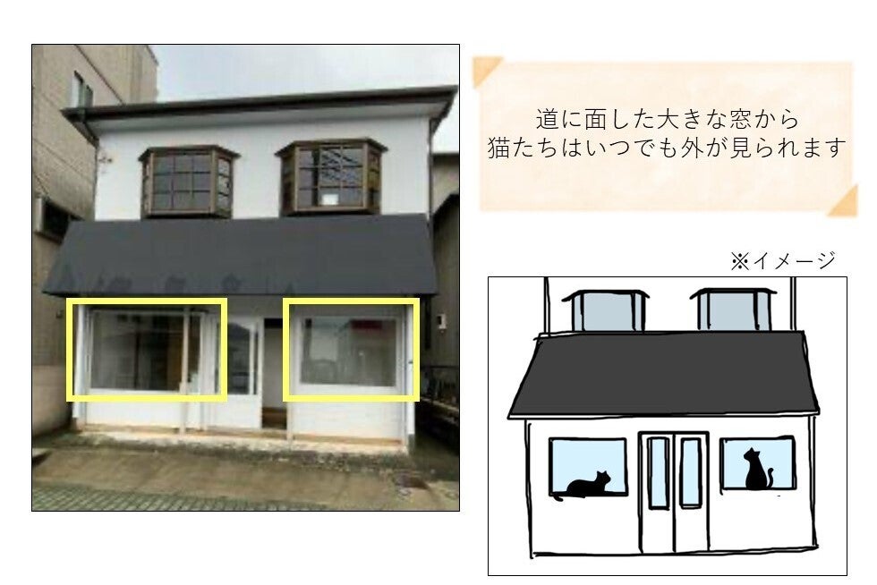 駅から大学までの通学路に大きなガラスの出窓がある物件を見つけました。猫の中には外を見ることが大好きな子もいます。この窓を有効活用し、いつでも猫たちが外を自由に眺められるお店を作りたいと考え、この物件に魅力を感じました。