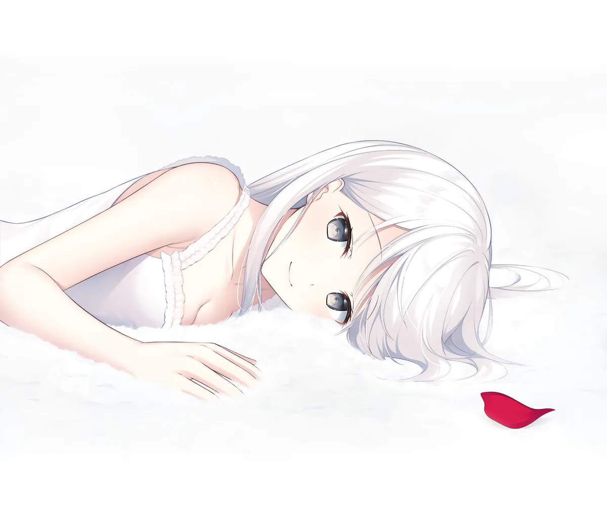 白い空から、横たわる彼女の頬に、雪が舞い降りる。