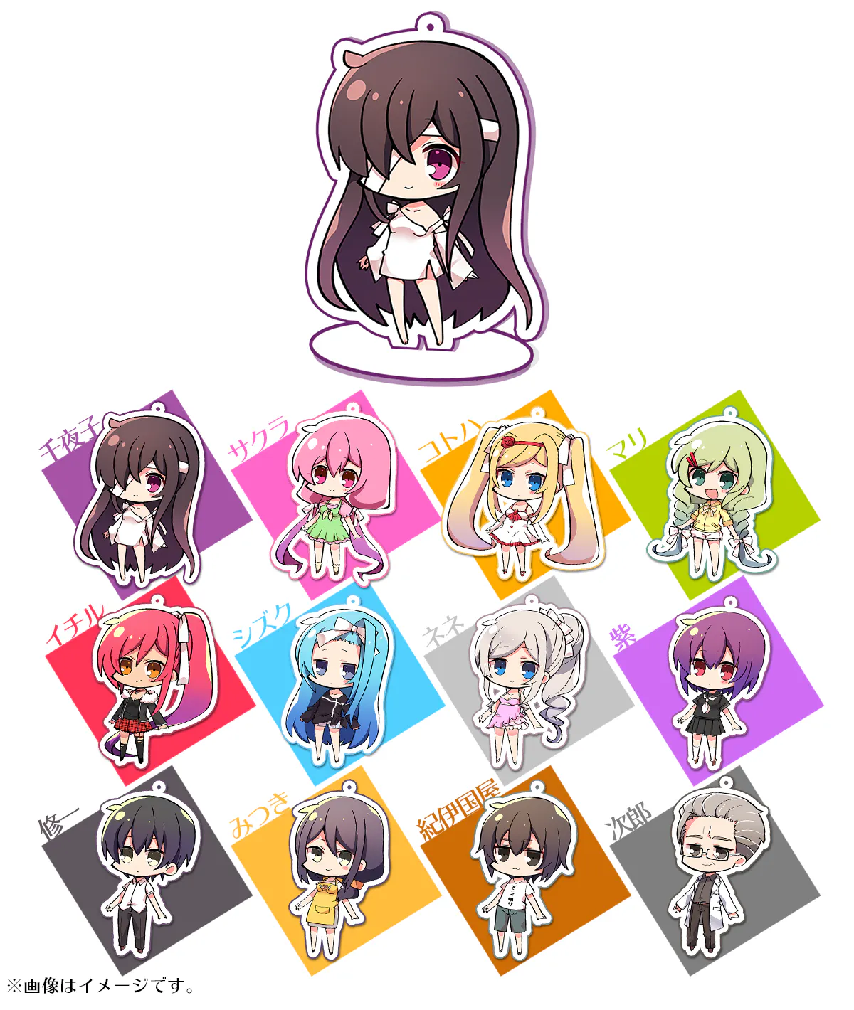 「セヴンデイズ」のミニキャラを台座つきアクキーに。12種類からお選び頂けます。(50×75mm程度)