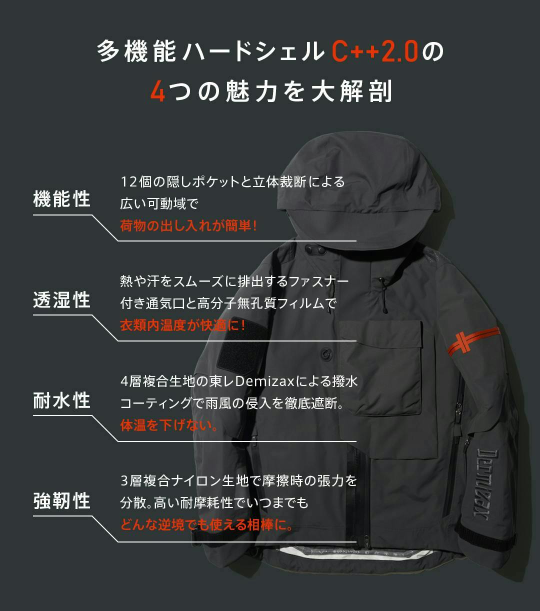 アウトドアから日常使いまで、12個のポケットで様々なニーズに対応します。C++2.0の新次元の機能性を体験してください。