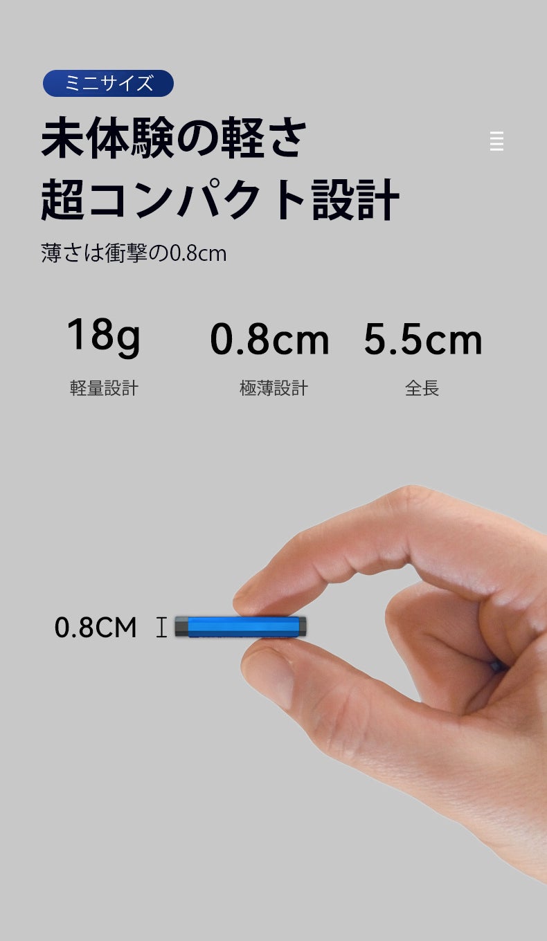 本製品の薄さは0.8cmと非常にコンパクトでどこへでも持ち運びできます。