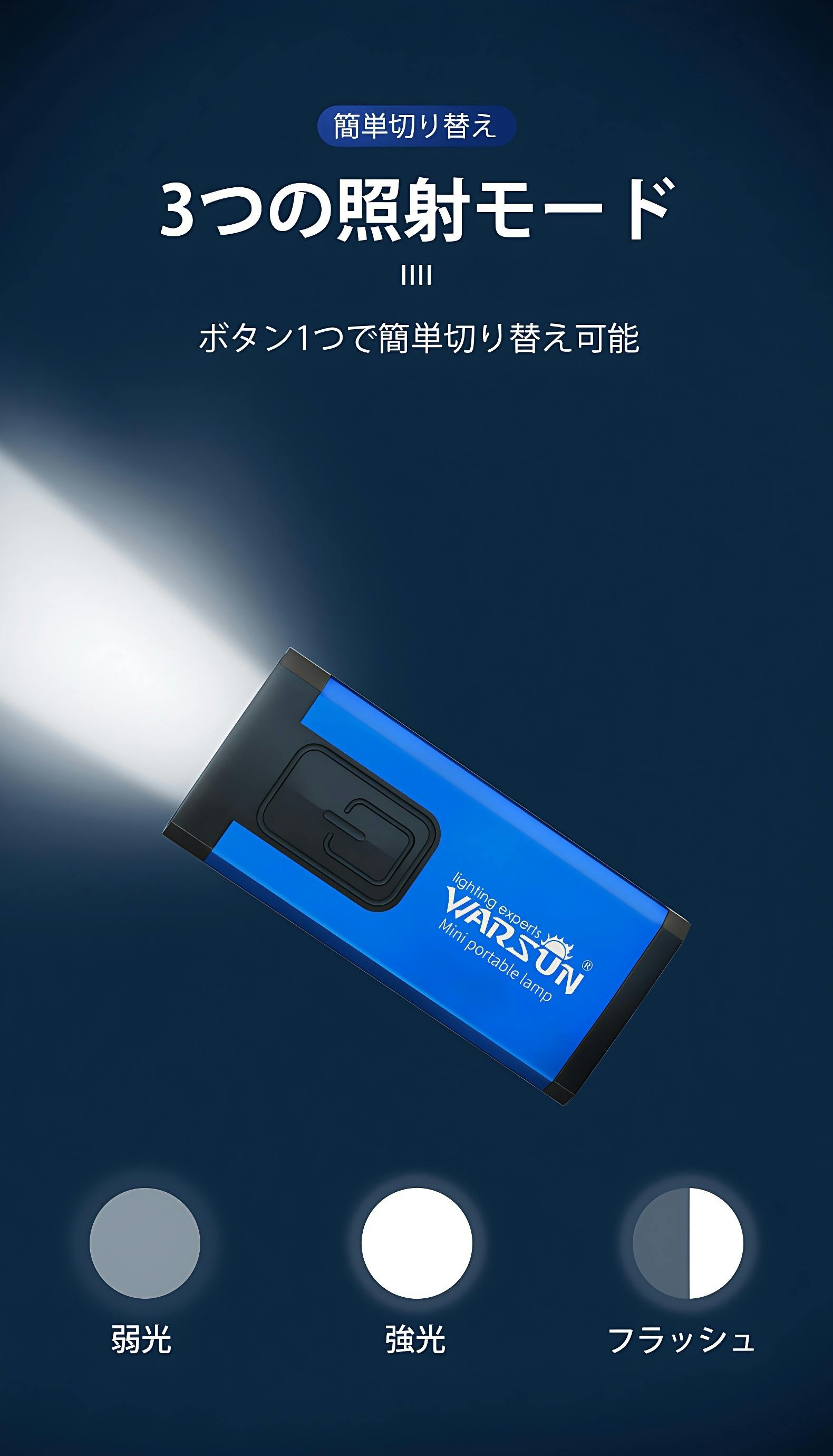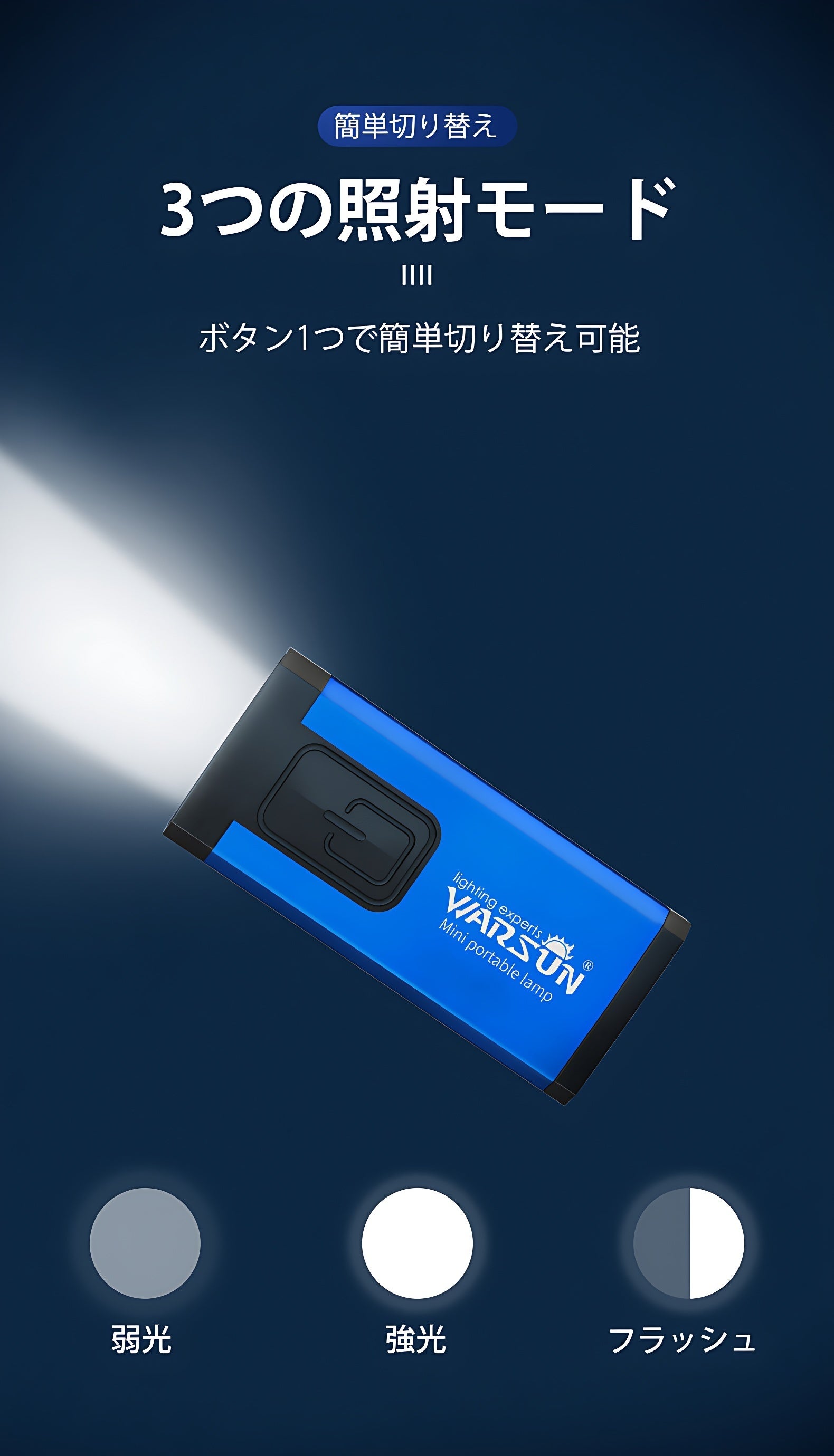 「MINI LIHGT」は3つの照射モードを搭載しており、用途によって使い分けることができます。