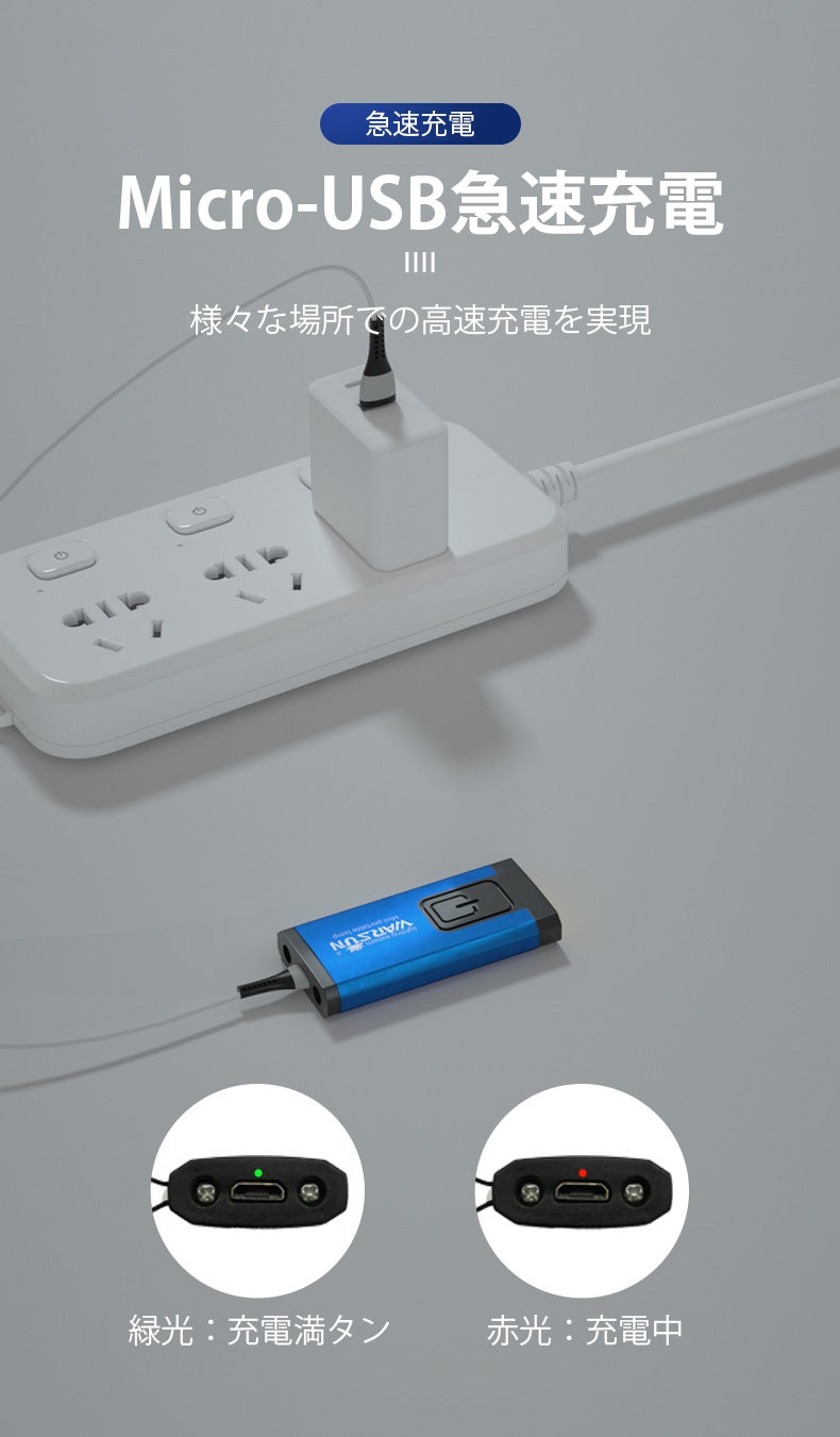 microUSBの急速充電に対応しており、2時間の充電で最大5時間の連続使用、スタンバイ状態で25日間以上バッテリーが持続します。