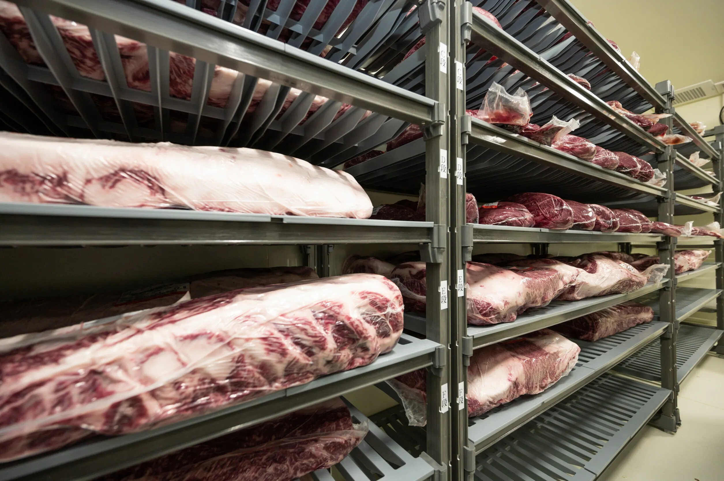 酷寒に見舞われる冬の十勝の冷熱を利用して、12月~2月の外気を製氷庫に給気して蓄冷させます。夏場は電気も用いたハイブリッド構造で、熟成庫内を常に0~1℃にキープすることで、温度変化による肉へのダメージのリスクなく熟成し、肉本来の酵素の働きで、軟らかな肉質と深いうま味を引き出します。