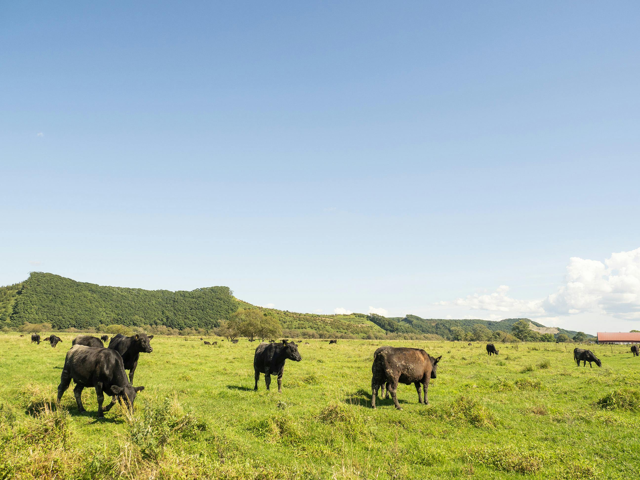 釧路市の郊外にある榛澤牧場では、黒毛和種とは別な黒い牛たちが草を食べています。これは、日本では飼養頭数が少ないアンガス種。