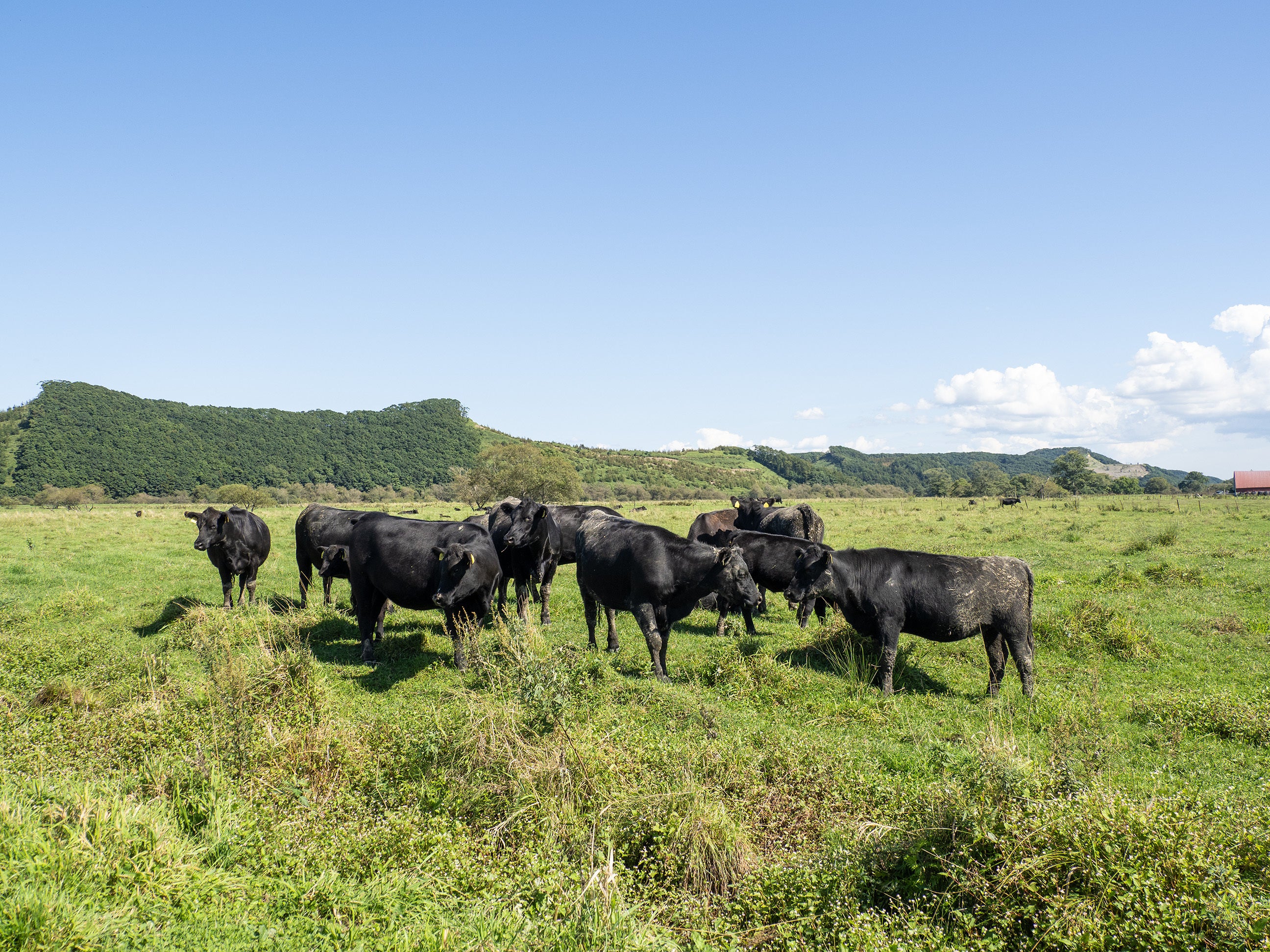 釧路市の郊外にある榛澤牧場では、黒毛和種とは別な黒い牛たちが草を食べています。これは、日本では飼養頭数が少ないアンガス種。