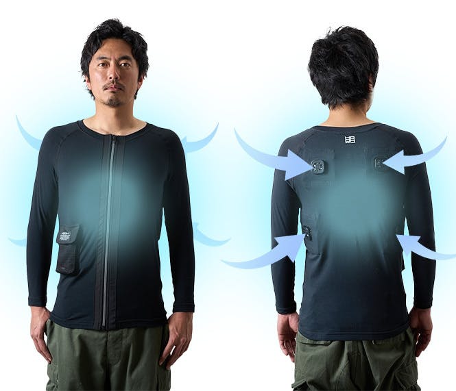 ファン付きウェアを長年販売し続けた私たちが今回オプション品として紹介するインナーは冷却効果を効率良く発揮することができる最適解とも呼べるインナーです。