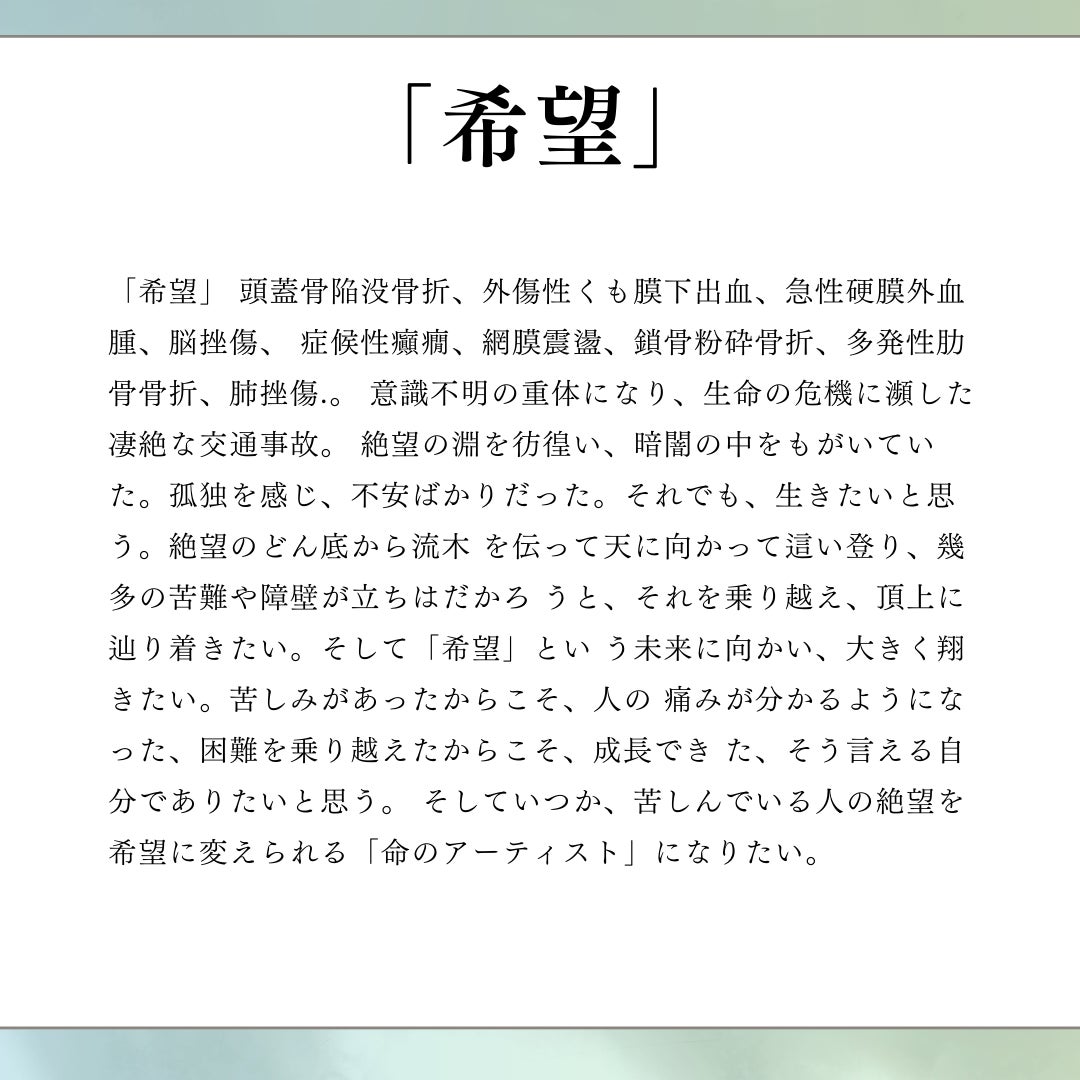 苦しんでいる人の絶望を希望に変えられる「命のアーティスト」になりたい。