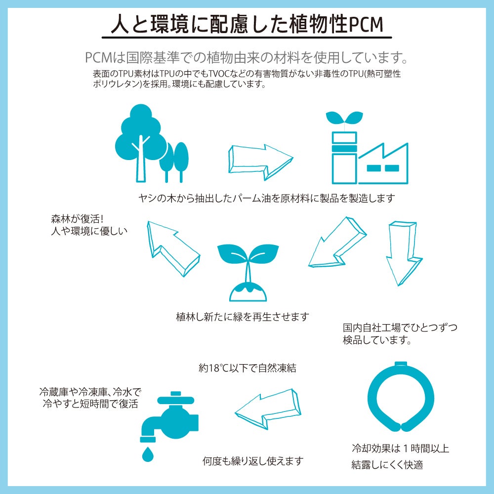 SUO Z クールベストに使用しているPCMは、ヤシ系のパーム油から抽出した植物由来のPCMを使用しています。人にやさしく、環境に優しくをコンセプトに商品を作っています。