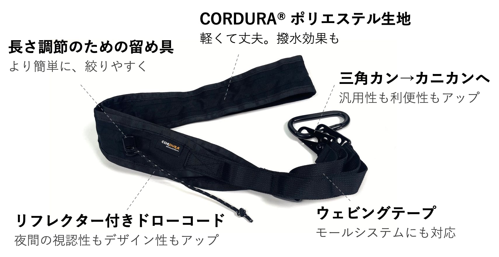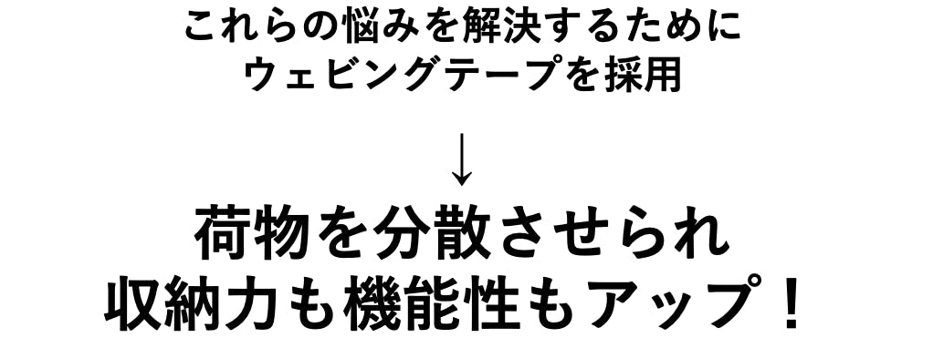 ウェビングテープを採用することで、収納力と使い勝手を向上させました。