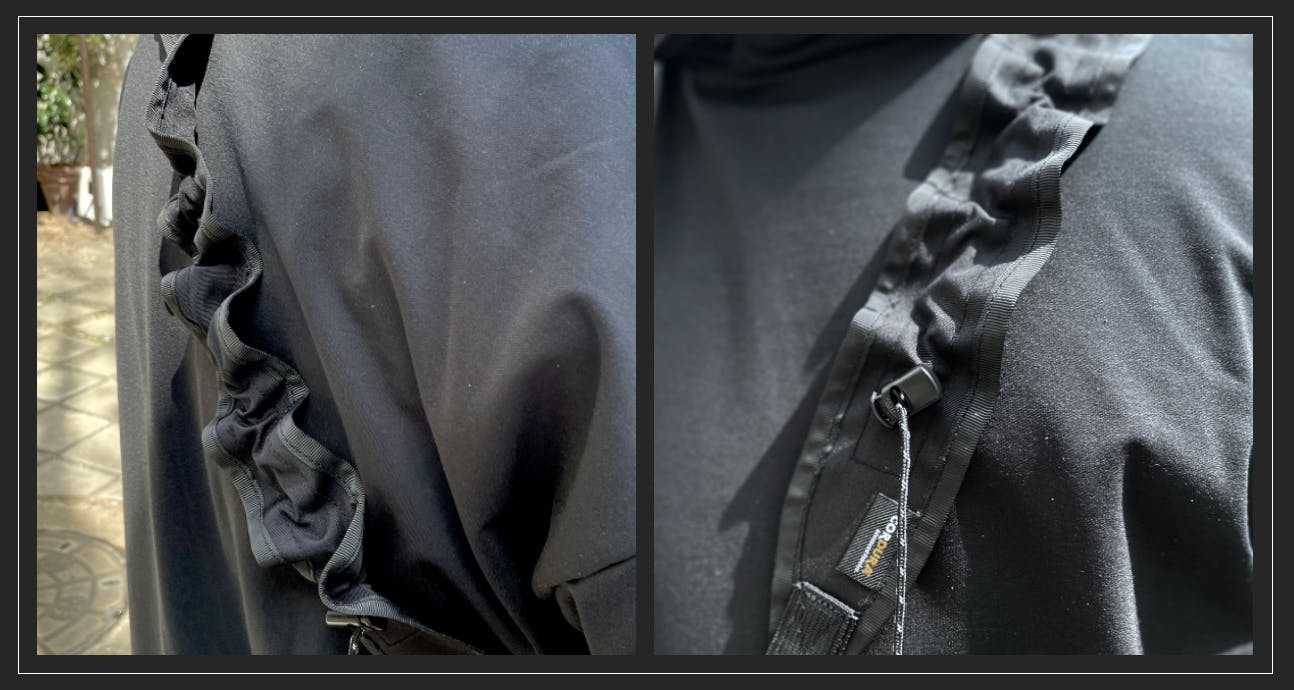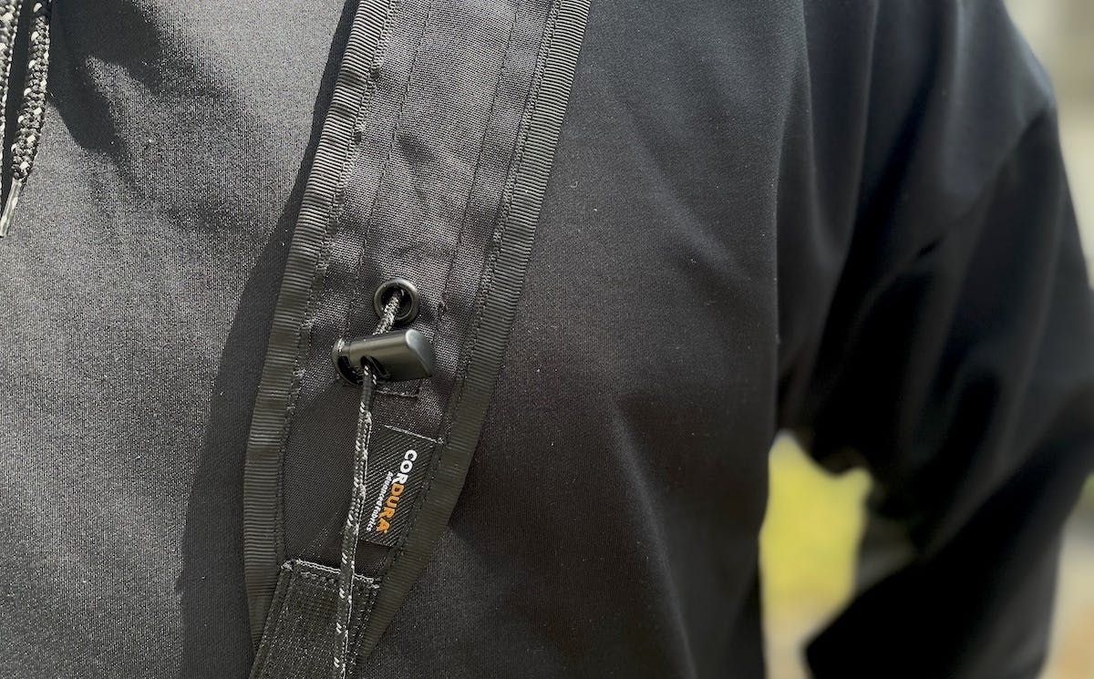 絞りの留め具を薄くし、使いやすさをとことん追求しました。さらに、ドローコードをリフレクター素材に変更。夜間の視認性はもちろん、デザイン性もアップ。