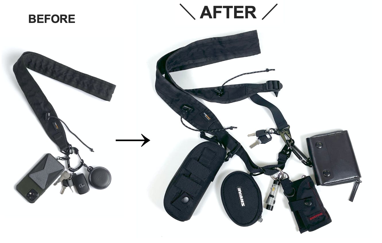 Dカンやループ付きポーチなどぶら下げられるアイテムが大幅に増えました。