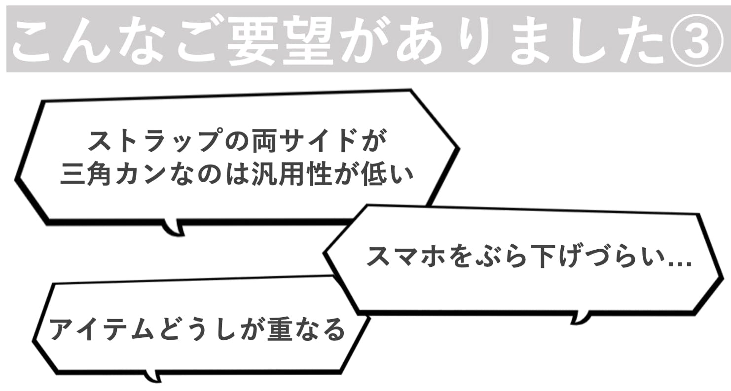 鍵やイヤホンなどをひとつのカラビナに集約する方法から、分散させられるデザインに変更しました。