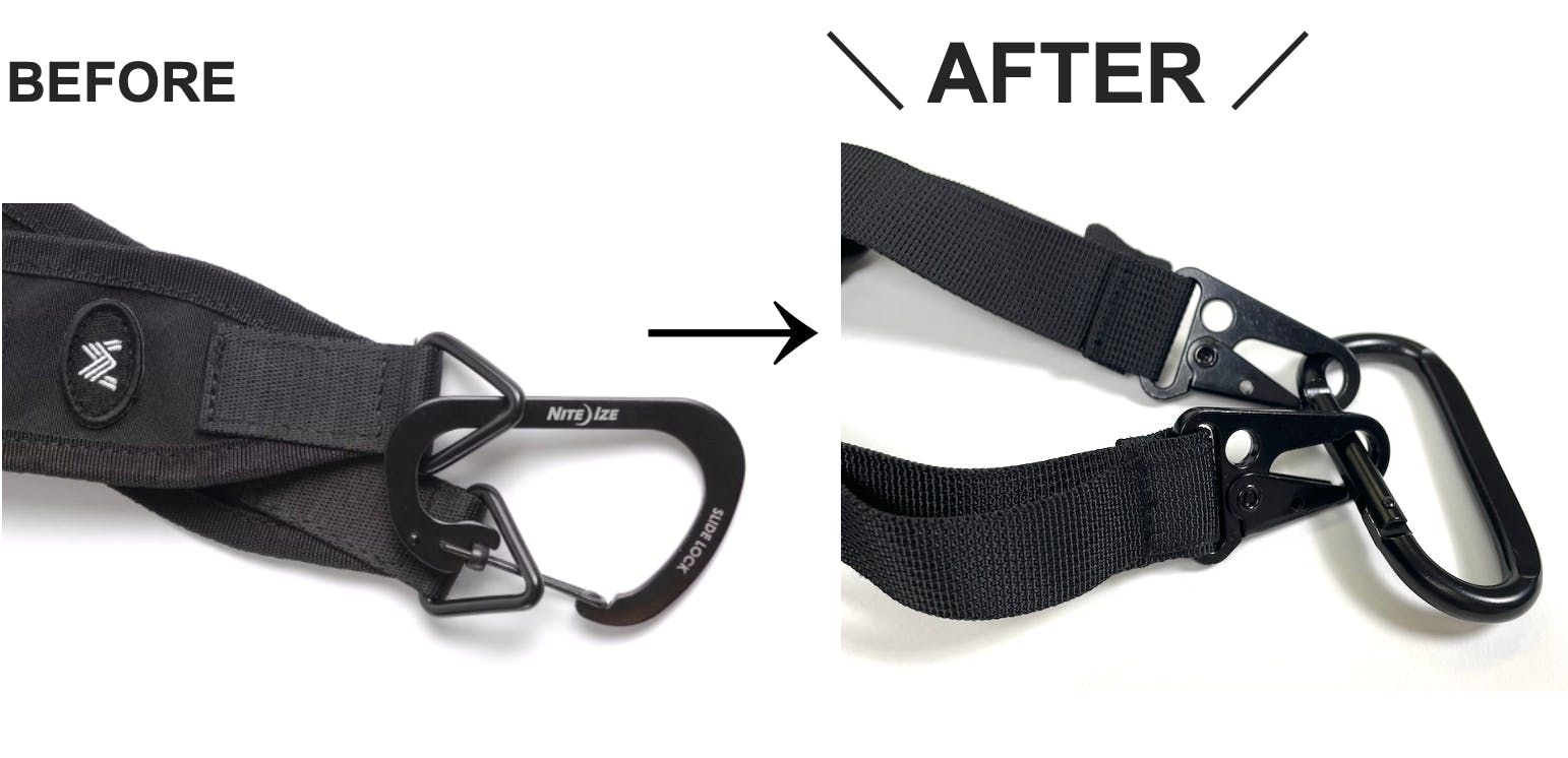 ストラップの両サイドを三角カンからカニカンへ変更。