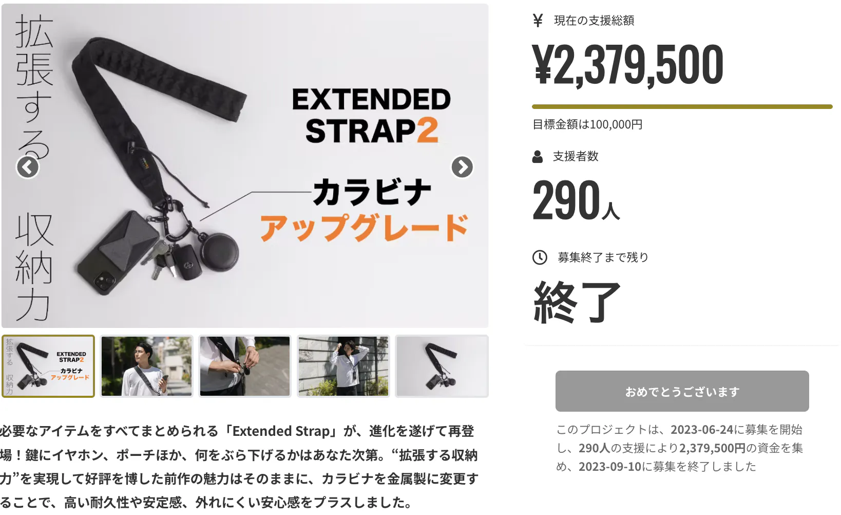 手ぶらスタイルをこよなく愛するメンバーで試作ストラップを毎日使用し、使いやさすさを追求した第一弾は233名の方にご支援いただきました。