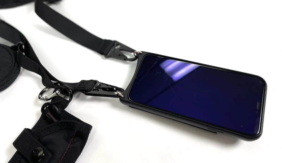スマホポーチのサイドに付いているDカンでエクステンデッドストラップ 3に装着すれば、これだけでお出かけOK!