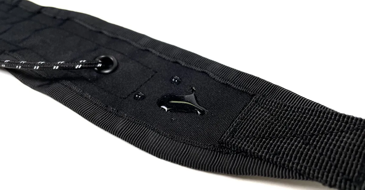 このコーデュラファブリックを高密度に織り、ウレタンコーティングを施すことによって耐水性にも優れます。