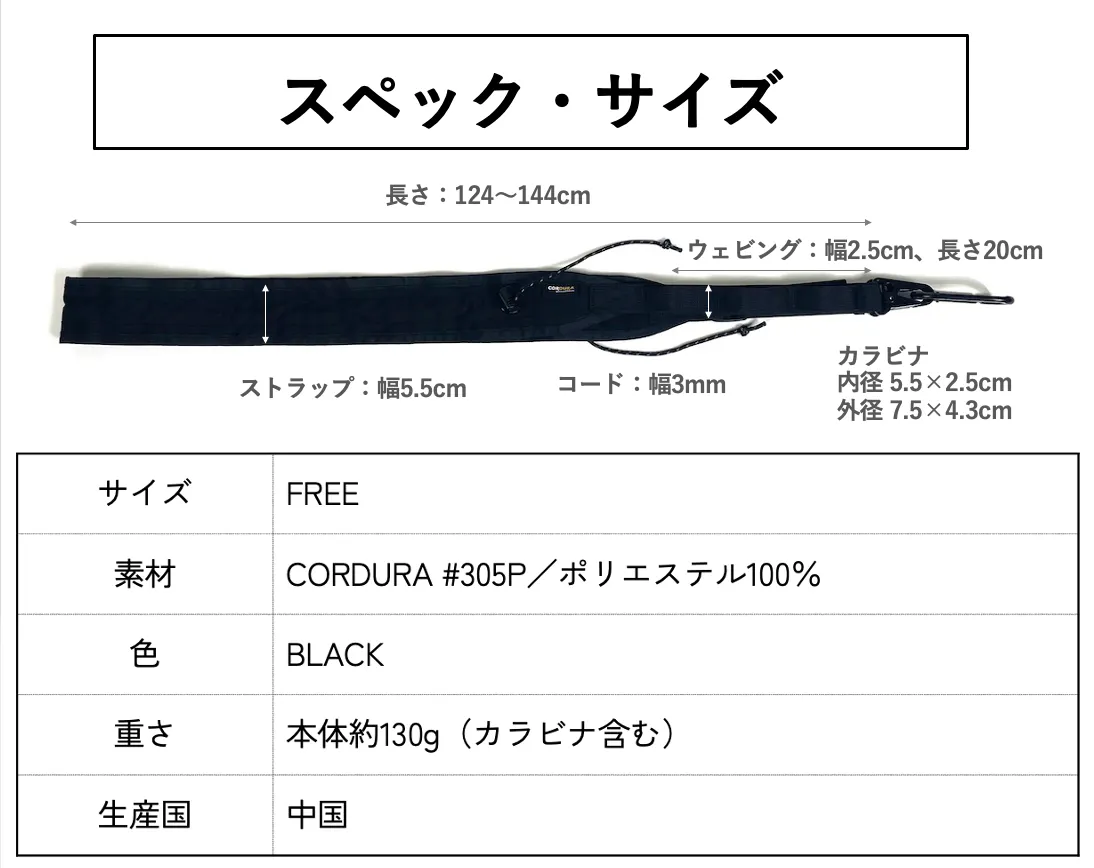ストラップ部分は最長144cm。くしゅくしゅさせずに使用すればすっきりとした印象です。
