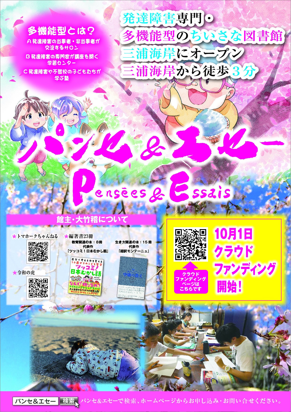 いつもお世話になっております。本日、私「大竹稽」の想いを込めた特別なプロジェクトがスタートいたしました。【発達障害専門多機能型図書館】「パンセ&エセー」を三浦海岸にオープンしたい!※写真はイメージです【なぜ、今この図書館が必要なのか?】2024年春、愛娘がASD(自閉スペクトラム症)と診断されました。 その診断の場で出会ったお母さんが、気も狂わんばかりに涙を流している姿を見て、私は決意しました。「娘と同じ境遇にある子どもたちの未来を守ること。これこそ天命だ」発達障害の子どもやご家族は、ともするとグループから外れ、孤立してしまいがちです。「一般とは違う」という重いのしかかる現実。そんな時だからこそ、本と出会い、人々と出会い、新しい生き方・考え方と出会える「学び場」が必要なのです。【「パンセ&エセー」が提供する4つの価値】 A:発達障害専門の図書館厳選された書籍を無料で貸し出し。発達障害に関する専門書から、心を豊かにする良書まで。 B:発達障害や不登校の子どもたちが学ぶ教室「アート」「工作」「作文」「サイエンス」「レゴブロック」など、子どもたちの個性を活かしたプログラム。 C:発達障害の専門家が講座を開く学習センター心身の成長相談、進路の悩み相談。ご家族の思い込みに気づき、子育てに活かせるセミナーを開催。 D:発達障害の当事者・非当事者が交流するサード・プレイス三浦海岸の美しい自然に囲まれた、何もしない贅沢な時間を過ごせる場所。【場所は三浦海岸 - 特別な理由があります】東京からほど近い観光地、三浦海岸。ウィンドサーフィンワールドカップも開催される美しい海岸近くに、この小さな図書館を開きます。白い砂浜、映画やドラマのロケ地としても使われるこの場所で、子どもたちと家族が**「自由」と「豊かさ」**に満ちた時間を過ごせるのです。【大竹稽の実績と信頼】これまで23冊の著書・編著を出版し、教育活動にも力を入れてきました。「令和の虎」出演こども禅大学クラウドファンディング達成の実績代表作『超訳モンテーニュ』『ツッコミ!日本むかし話』など【最後に - 時間は待ってくれません】発達「障害」は才能です。障害があろうがなかろうが、すべての子どもは対等の存在です。しかし、子どもにとっての1年は、大人の1年とまるで違います。大人たちが行動しないまま過ごした1年で、子どもたちは次の学年に進んでしまいます。子どもたちの1分1秒を無為にすることはできません。【今すぐご支援を】プロジェクト詳細・ご支援はこちら:https://camp-fire.jp/projects/876917/viewこのような偏見と戦い、子どもたちの健やかで自由な未来を創る仲間となっていただけませんか?皆様の温かいご支援を、心よりお待ちしております!