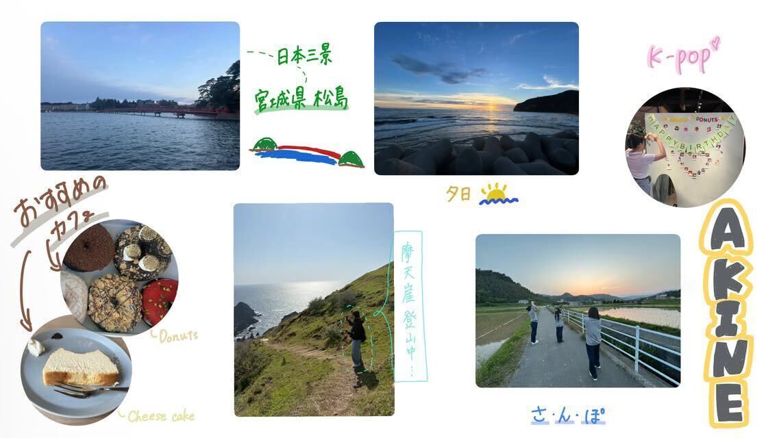 初めまして、あきねです!宮城県から地域みらい留学で隠岐に来ました!私が隠岐に来ようと思った理由は隠岐高校の特徴的なカリキュラムに魅力を感じたからです。私がおすすめする隠岐の場所はカフェです。本土にはない個人経営のお店がたくさんあって大好きです!