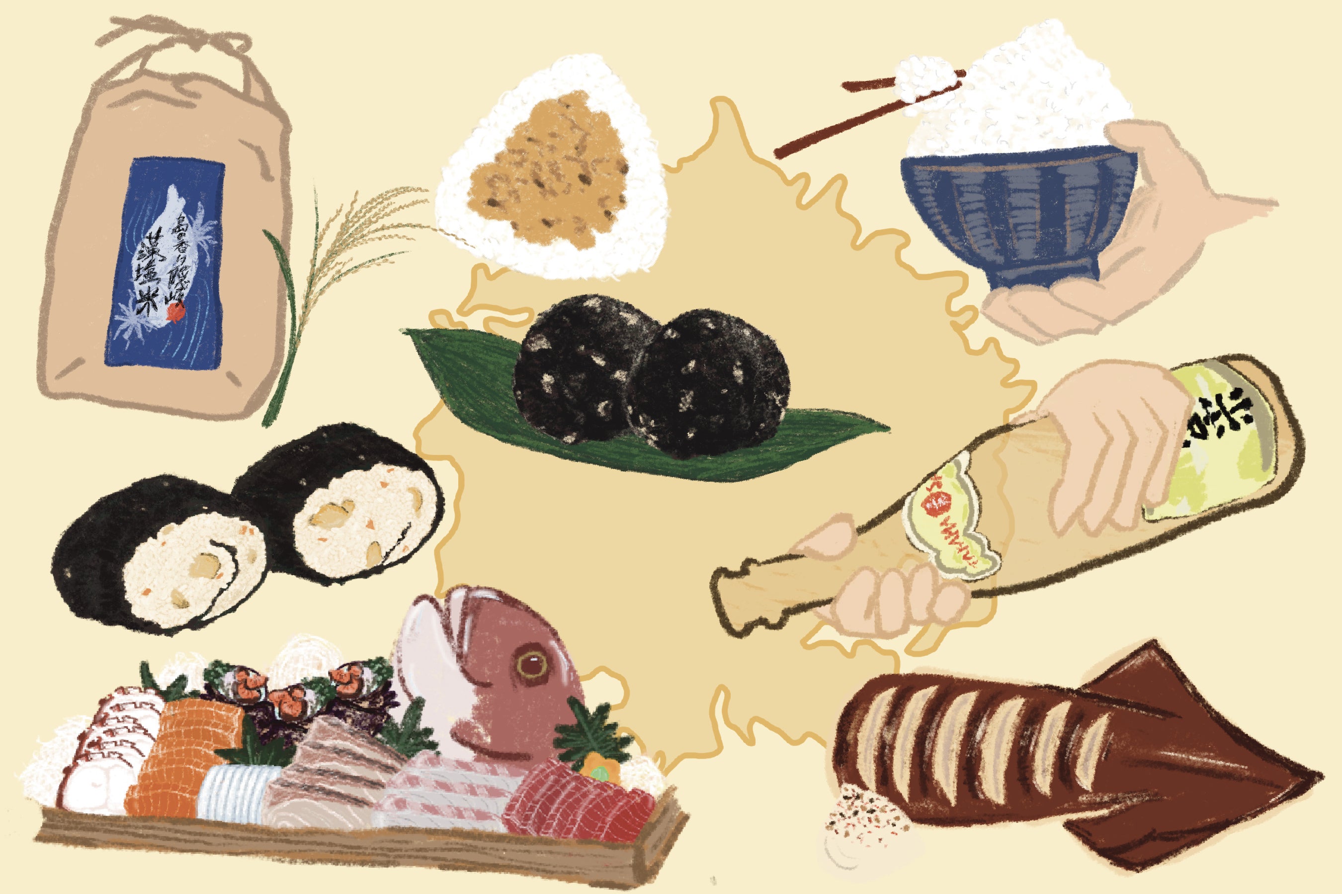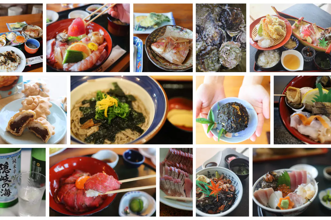 私は隠岐の郷土料理の中でサザエの海苔巻きと焼きイカが特に気になります。