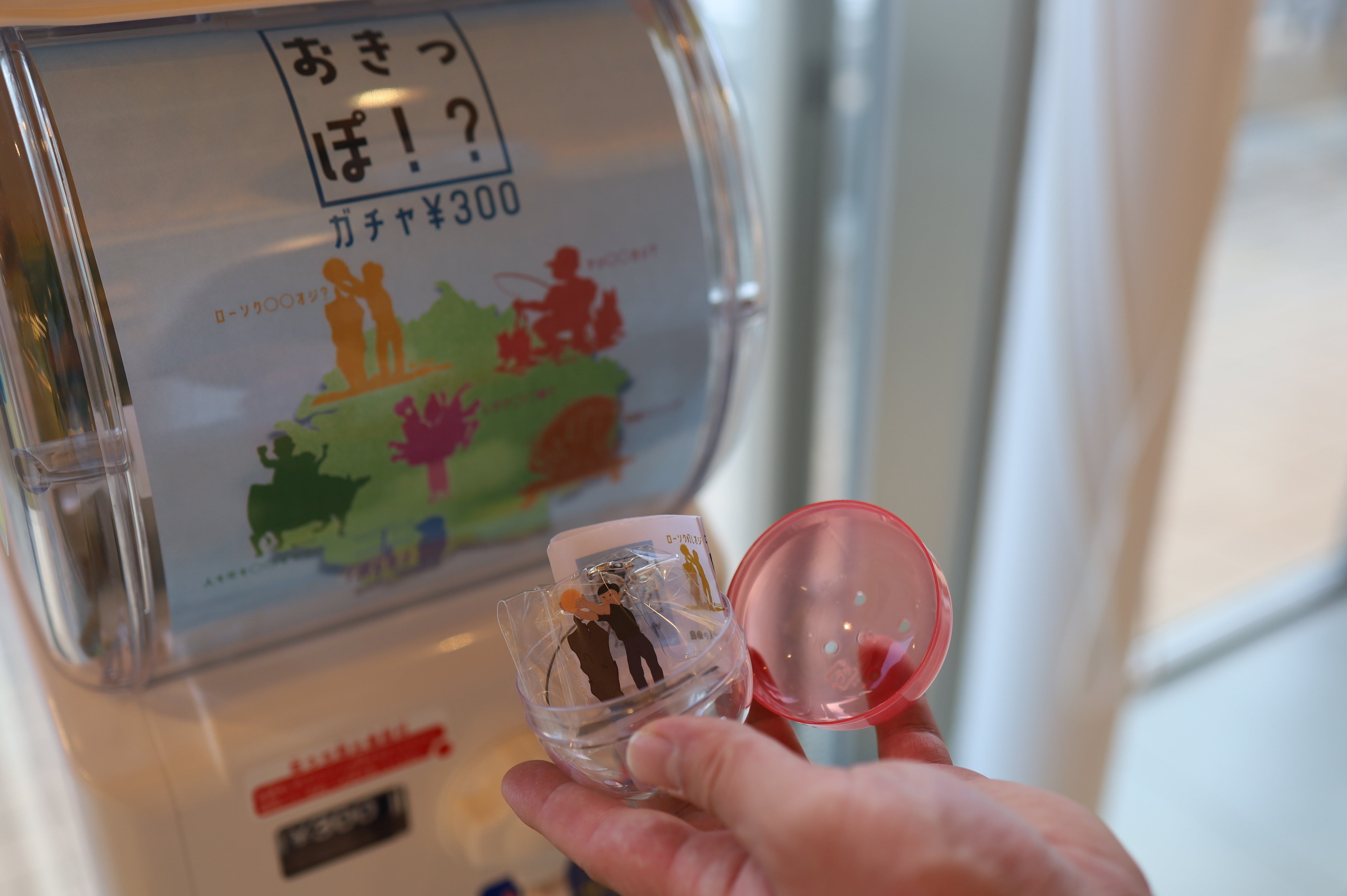 初めは、食材を採る様子や、郷土料理の作り方について動画やHPにまとめてアップしようと考えていましたが、似たようなサイトや動画はたくさんあることに気づきました。そんな時、島の玄関口である西郷港の隣にある隠岐ジオゲートウェイに、隠岐の島町観光協会オリジナルのカプセルトイが設置してあることを知り、その小さくて持ち運びやすく、大人から子供まで、さらには観光のお客さんにも楽しんでもらえる魅力から、コラボしたい!と思い担当の井﨑さんとお話しさせていただきました。