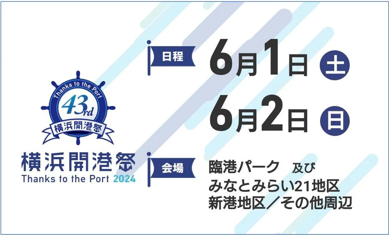 2024年第43回横浜開港祭の開催日は6月1日(土)、2日(日)となります。週末開催ということで多くの方のご来場が想定されますが、近年の異常気象なども考慮して安心安全を第一に開催してまいります。
