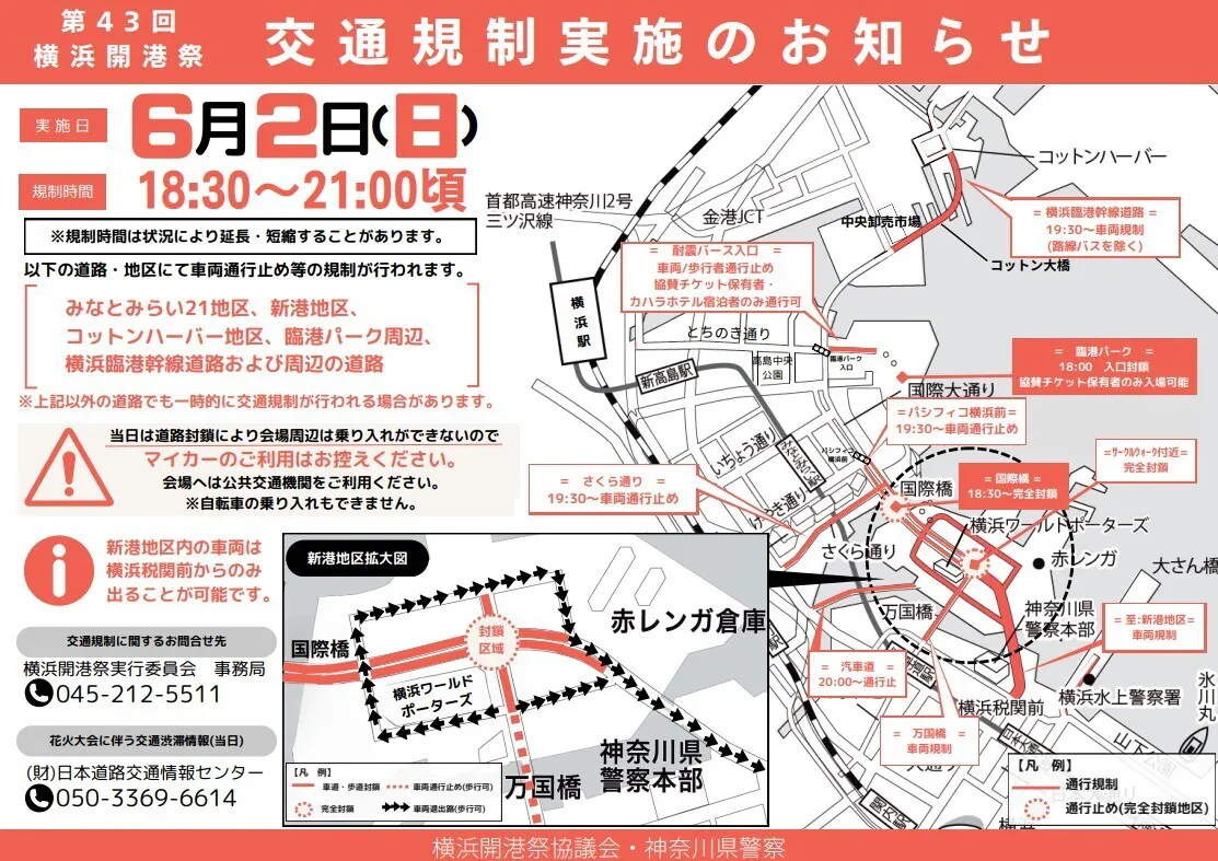 第43回横浜開港祭では、6/2(日)に交通規制を行います。